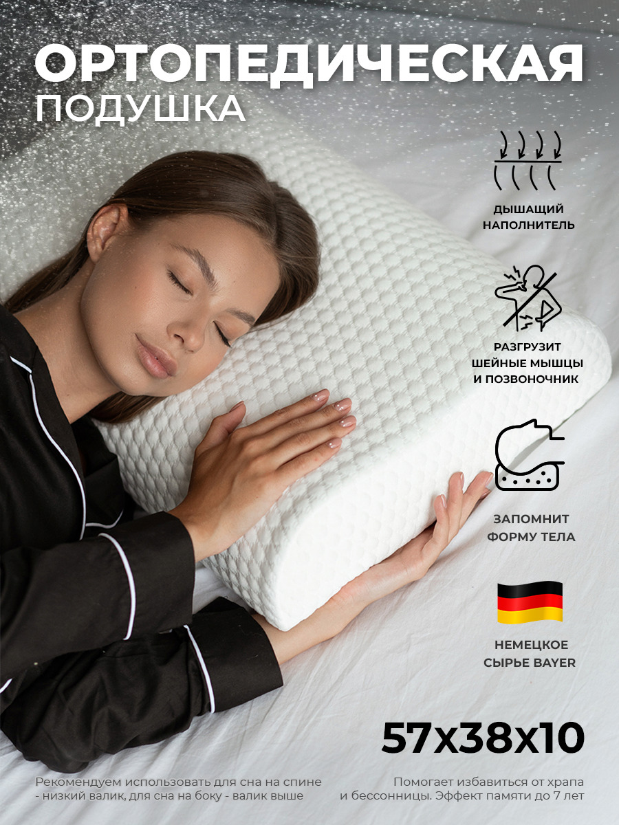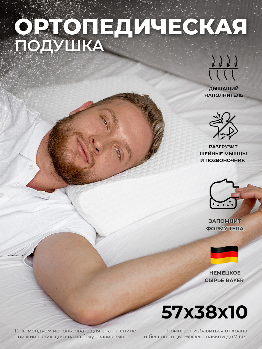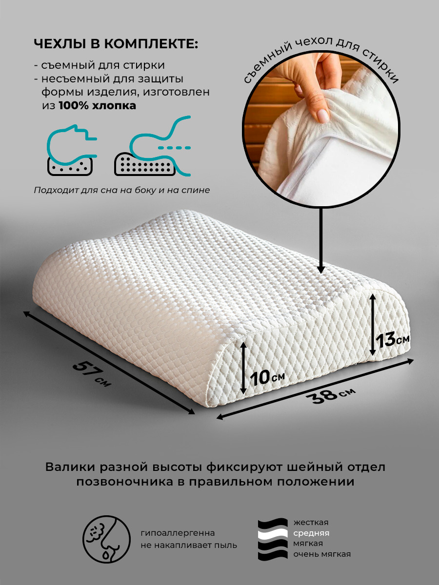 Ортопедическая подушка 57x38см, SleepTime Comfort L Memory Foarm, высота 13 см