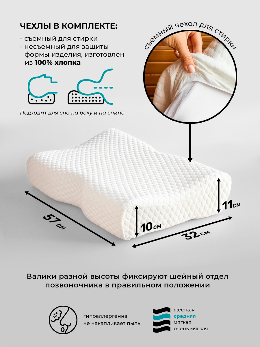 Ортопедическая подушка 57x35см, SleepTime Premium M, высота 11 см