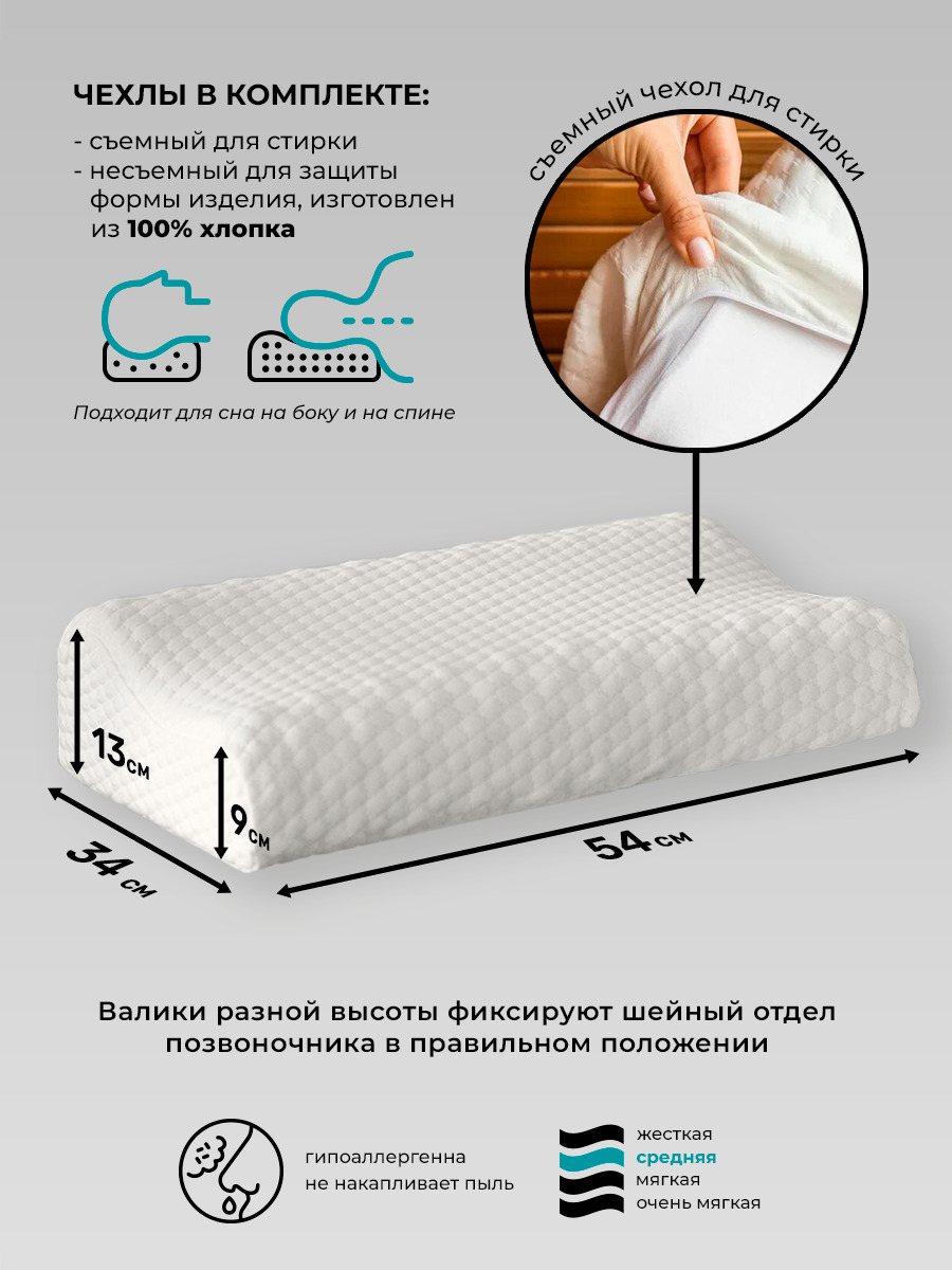 Ортопедическая подушка 54x34см, SleepTime Premium Massage, высота 13 см