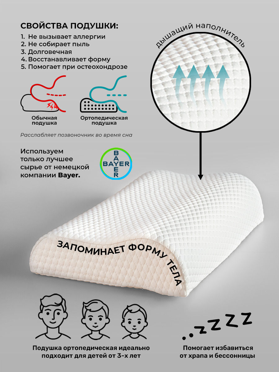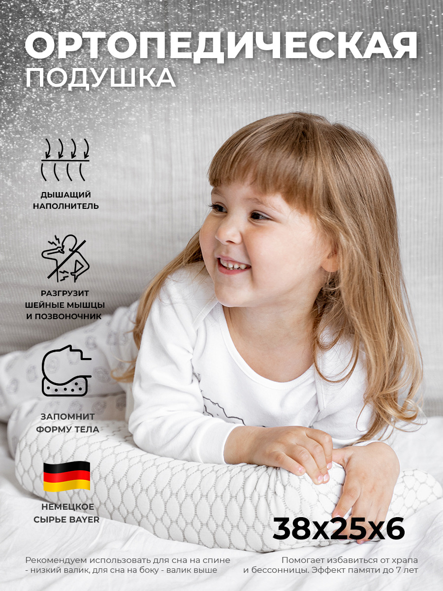 Ортопедическая подушка 38x26см, SleepTime Kids S, высота 8 см