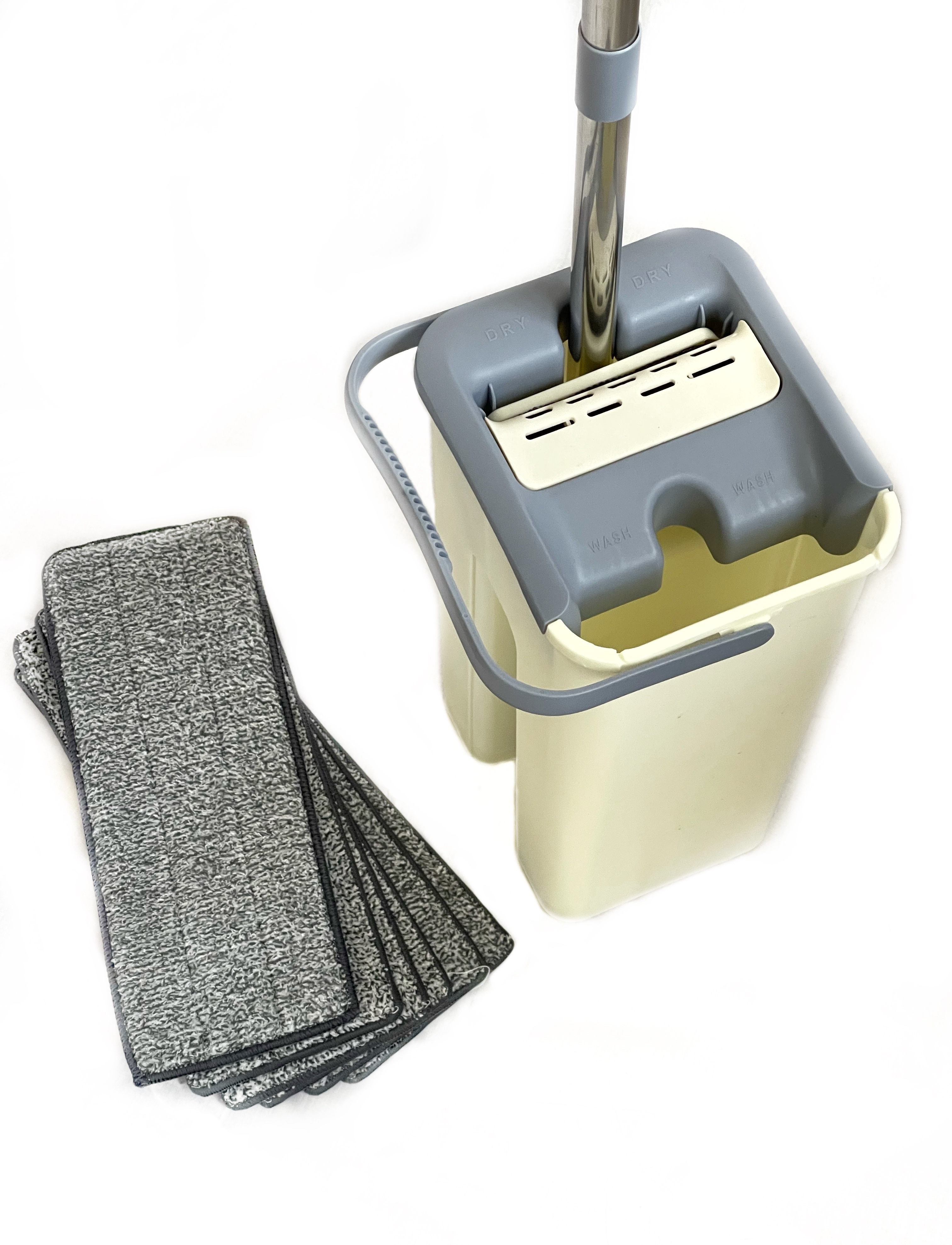 Швабра для мытья полов с отжимом и ведром, комплект из 6 насадок