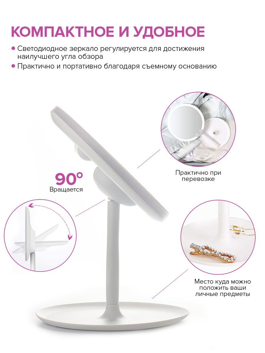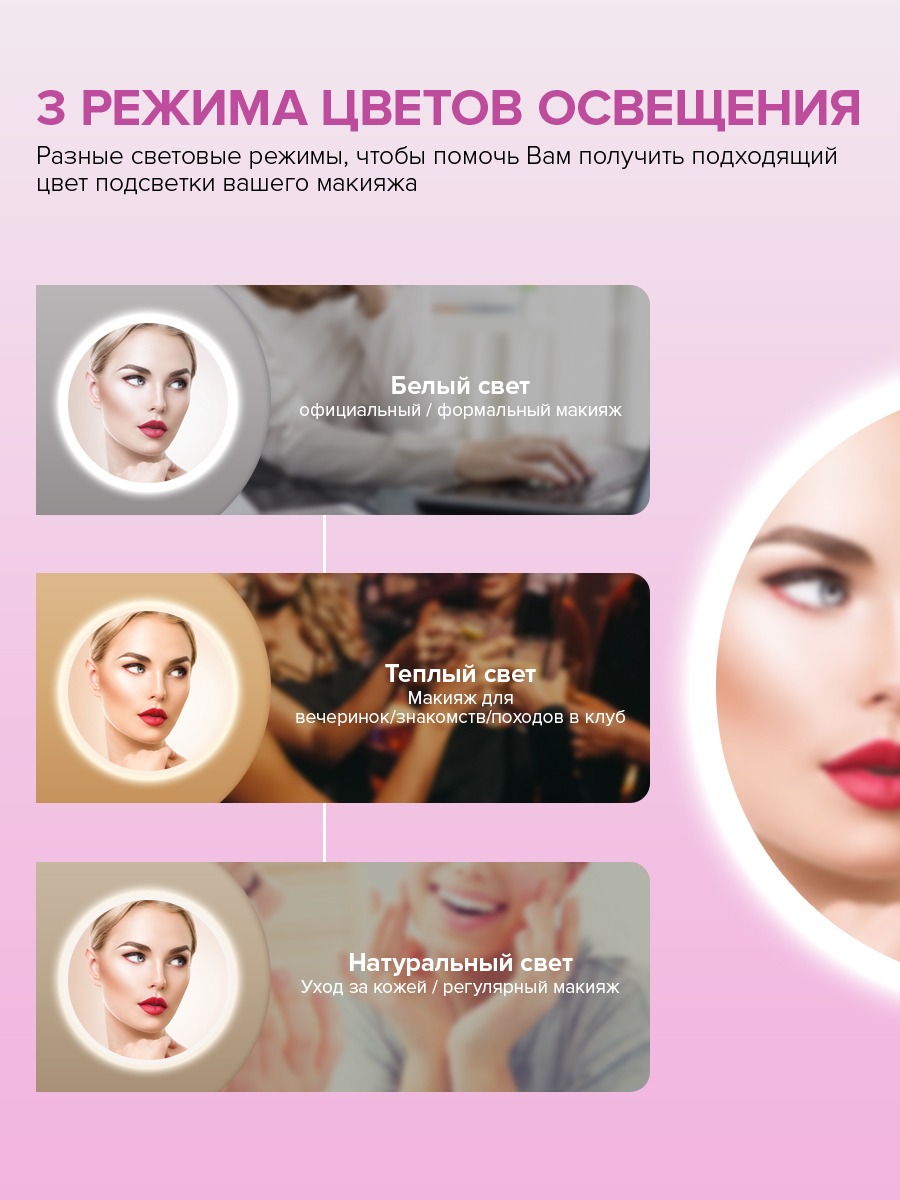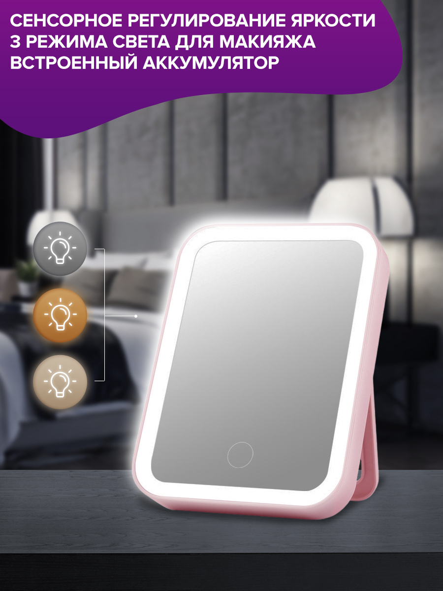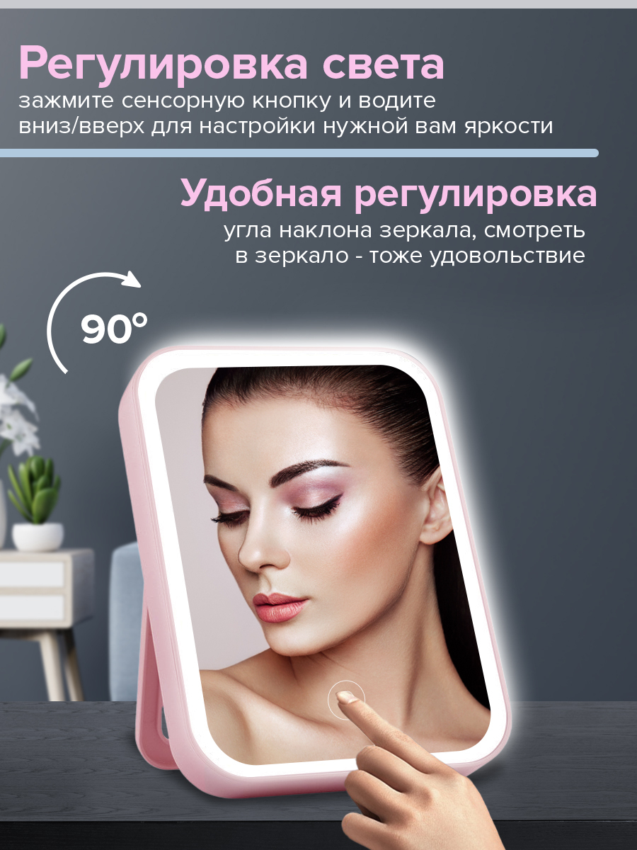 Настольное LED зеркало для макияжа / 3 вида подсветки / с лампами / для ванной / дома / спальни