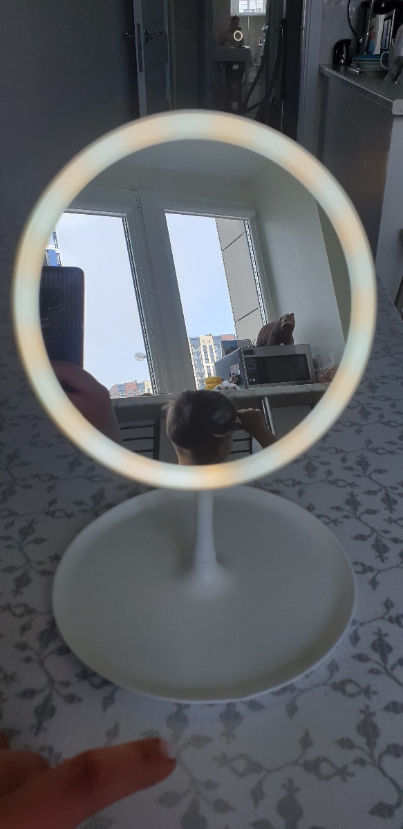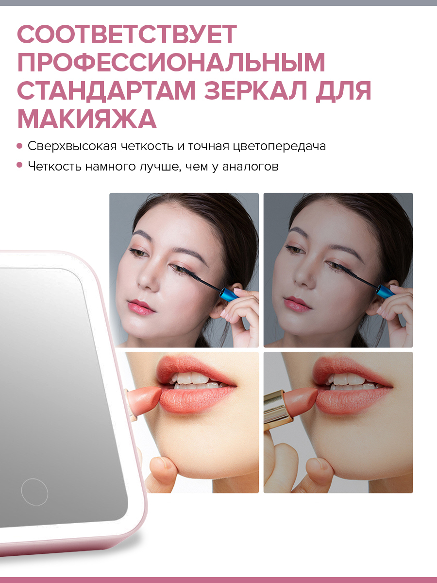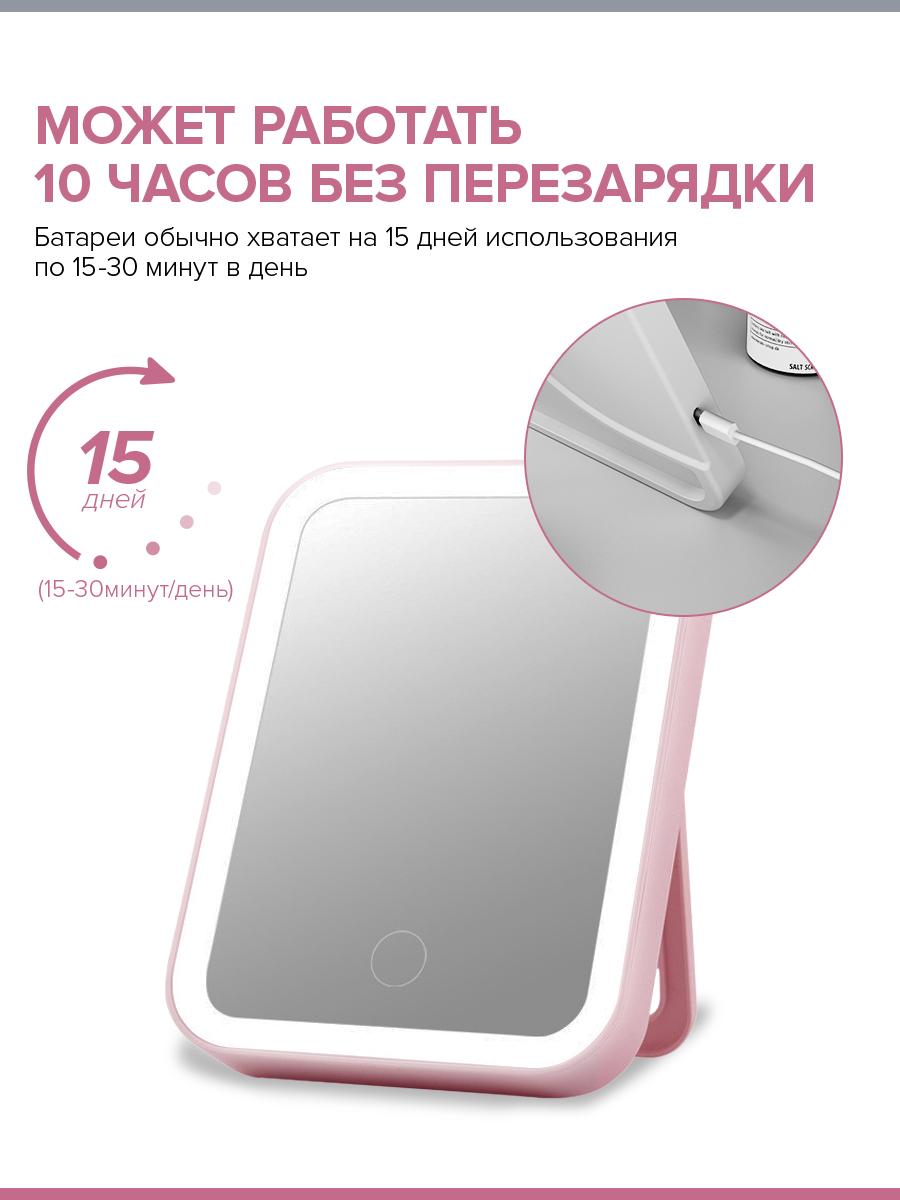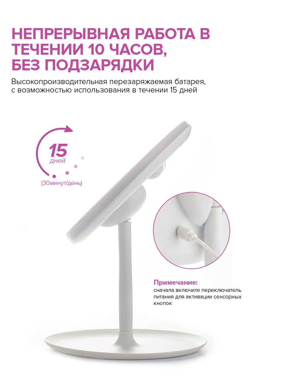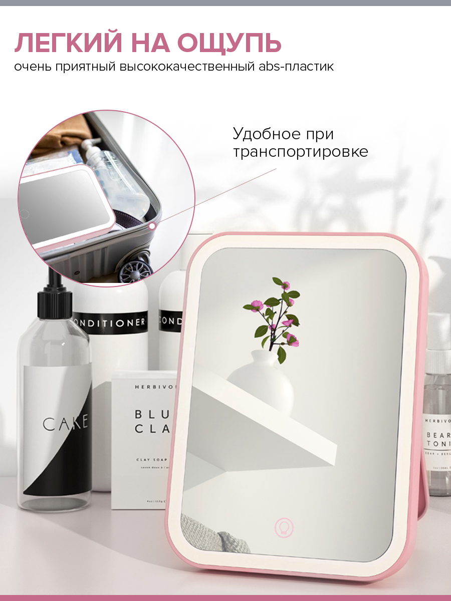 Настольное LED зеркало для макияжа / 3 вида подсветки / с лампами / для ванной / дома / спальни