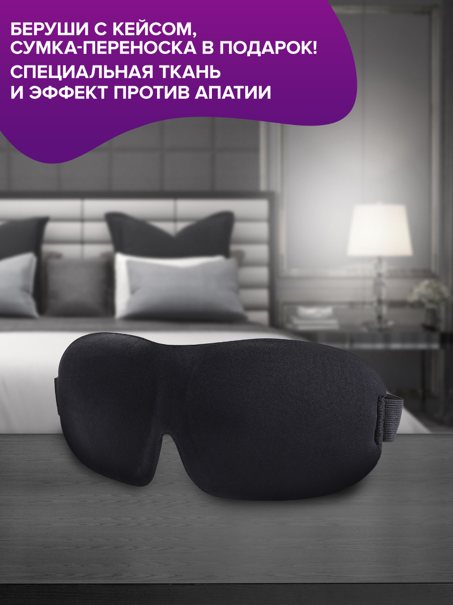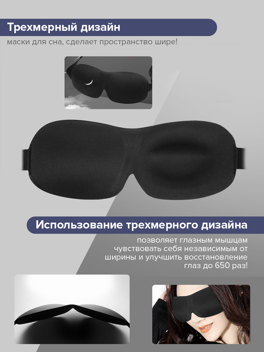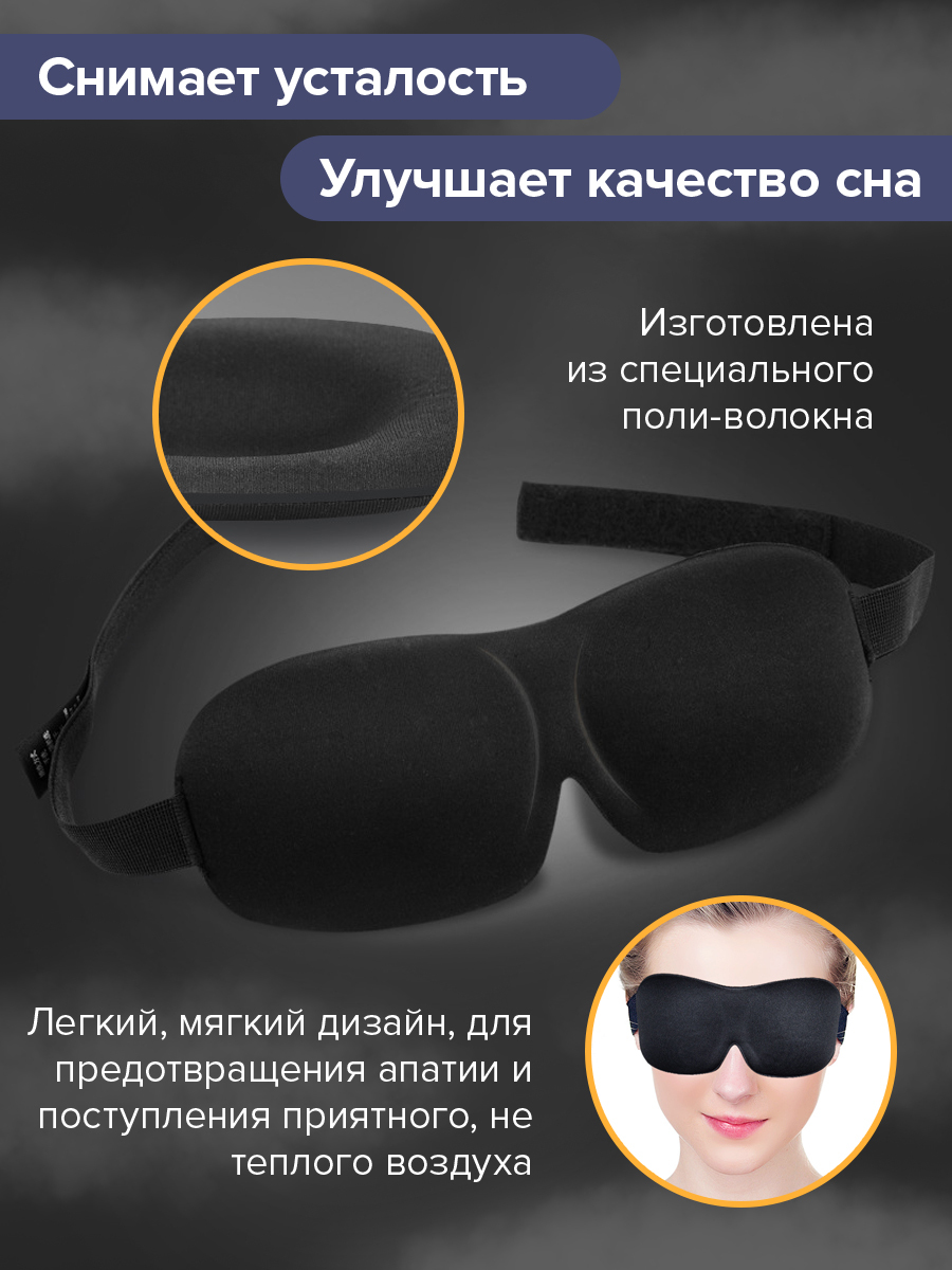 Маска для сна 3D ультра комфорт, черная, многоразовые беруши, женская, мужская, повязка ночная