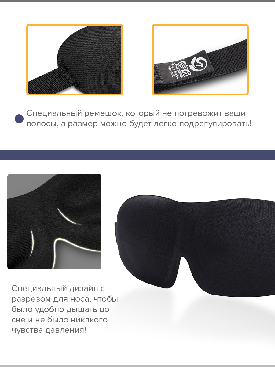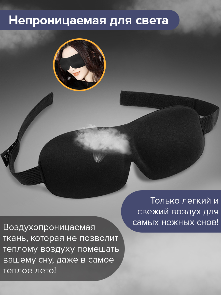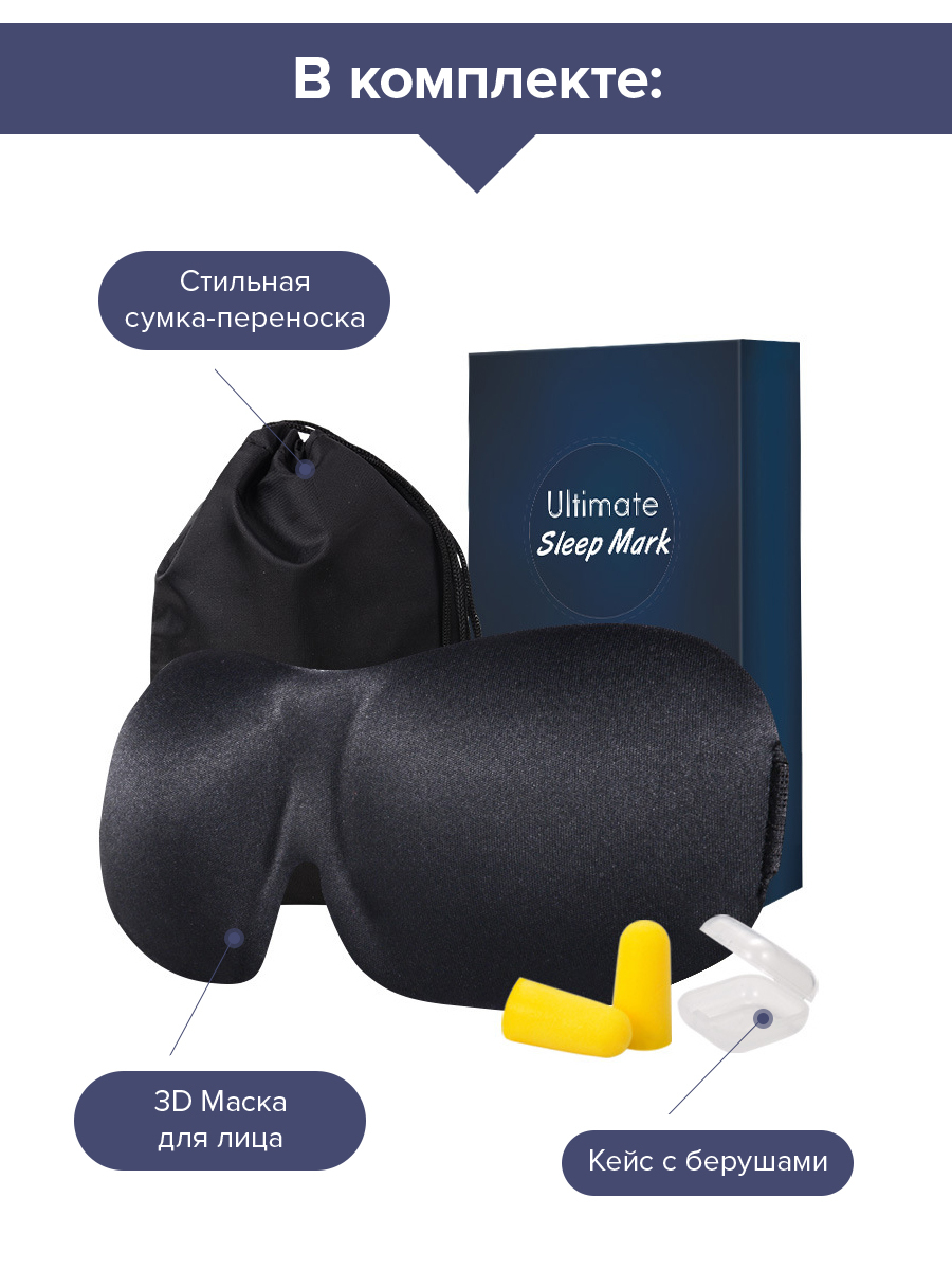 Маска для сна 3D ультра комфорт, черная, многоразовые беруши, женская, мужская, повязка ночная