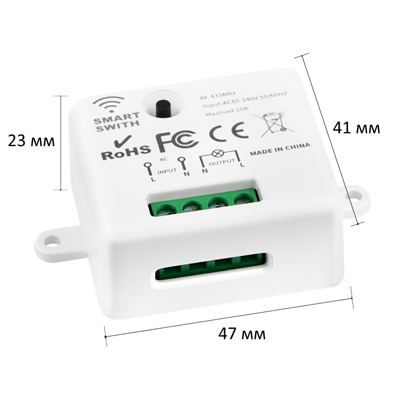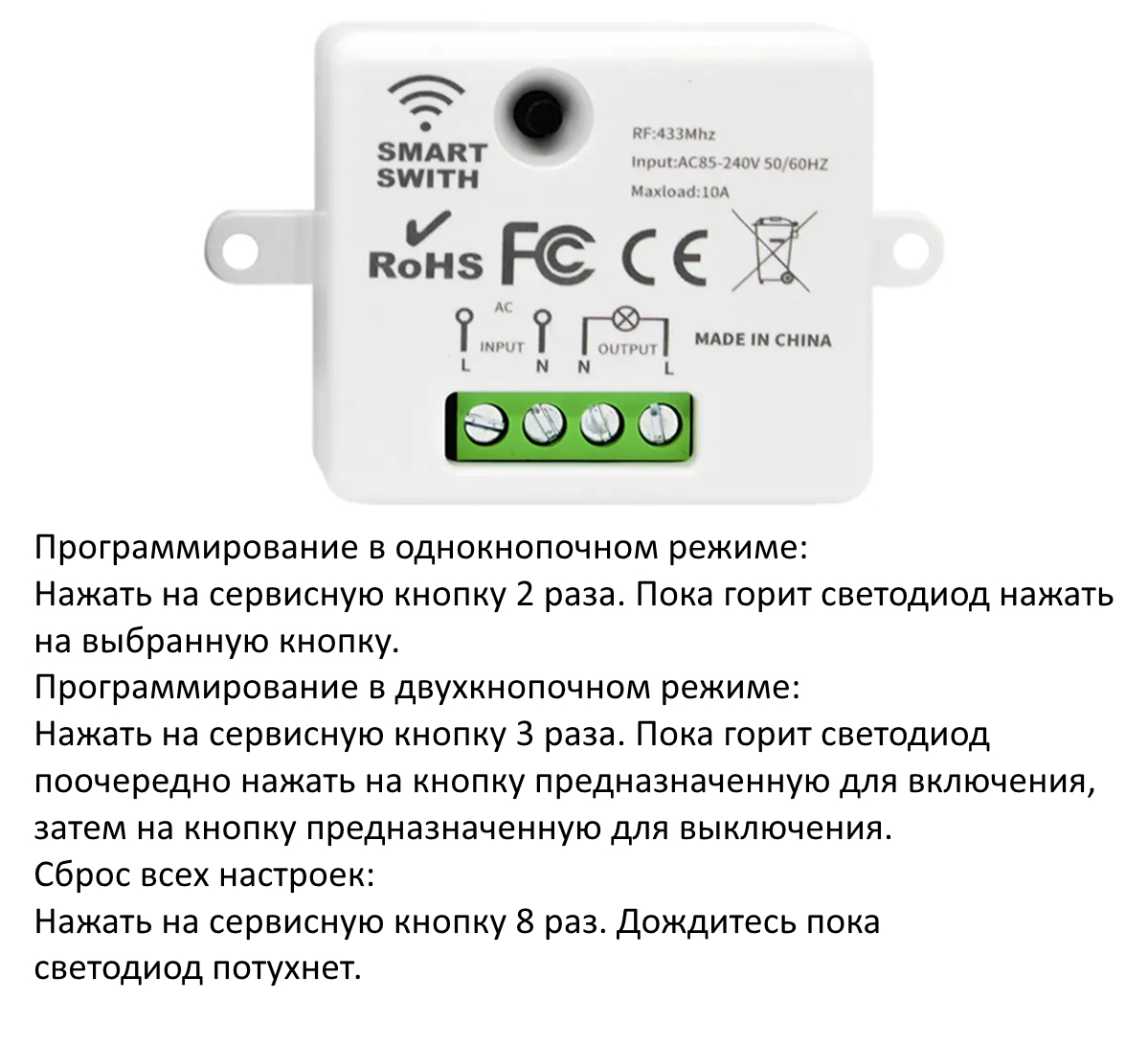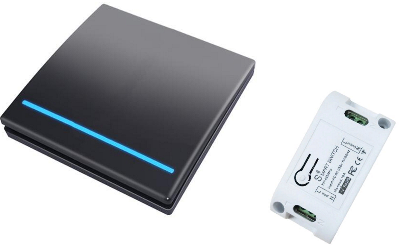 Комплект - Беспроводной выключатель 1-канальный RF 433Mhz белый RF1W + Радиореле одноканальное D01R