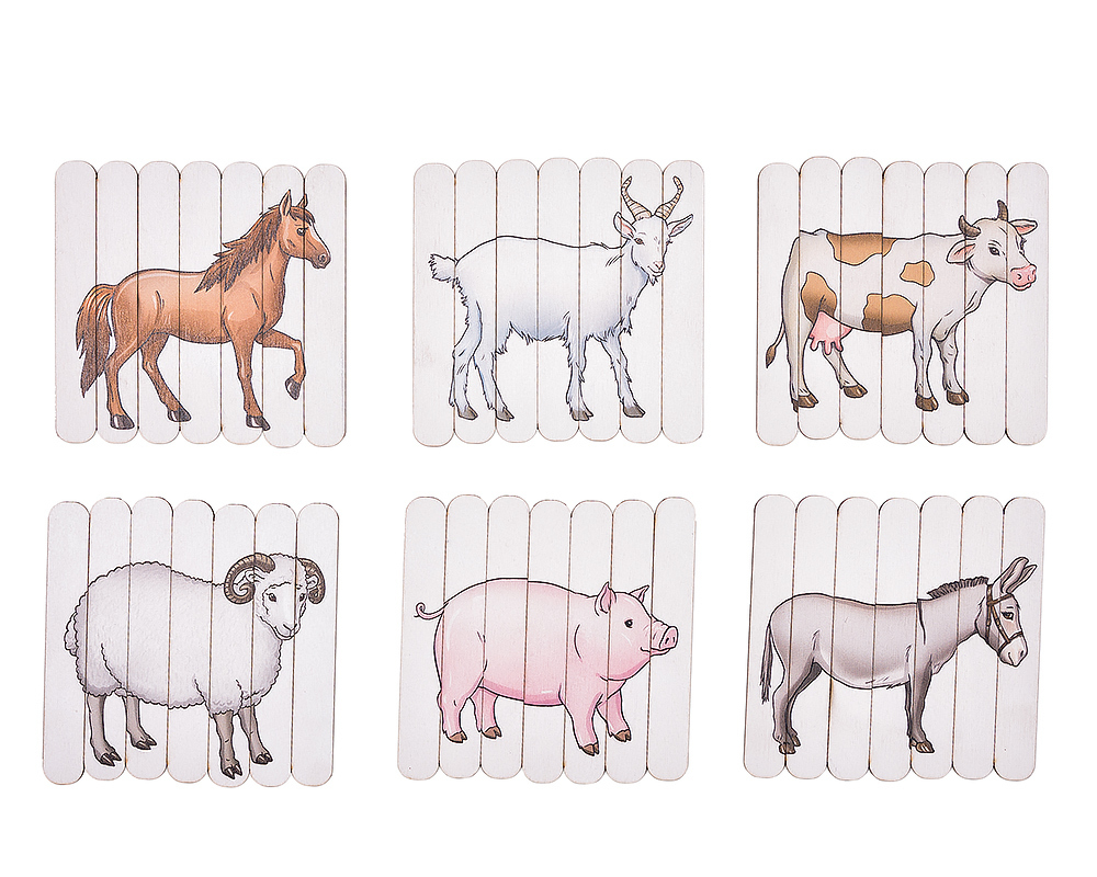 Пазлы из палочек Smile Decor "Ферма" , 6 пазлов в наборе