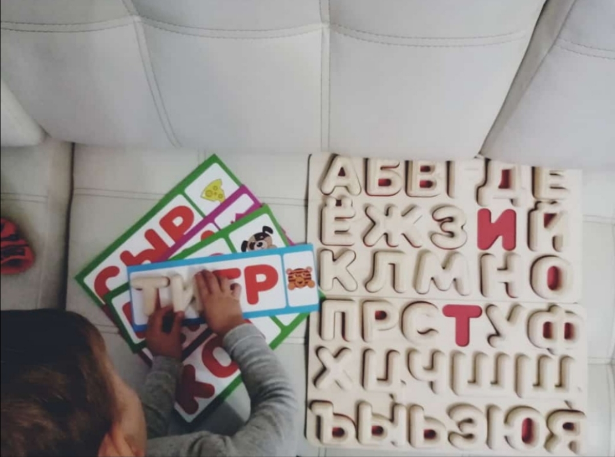 Большие деревянные буквы Smile Decor "Русский алфавит" с набором карточек, рамка-вкладыш, пазл