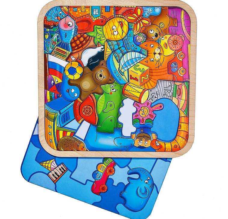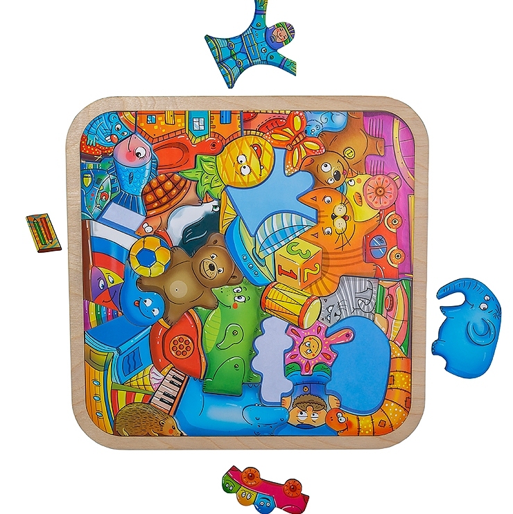 Деревянный пазл-головоломка "Игрушки", 1 ШТ, 42 детали в рамке, со съёмной подсказкой