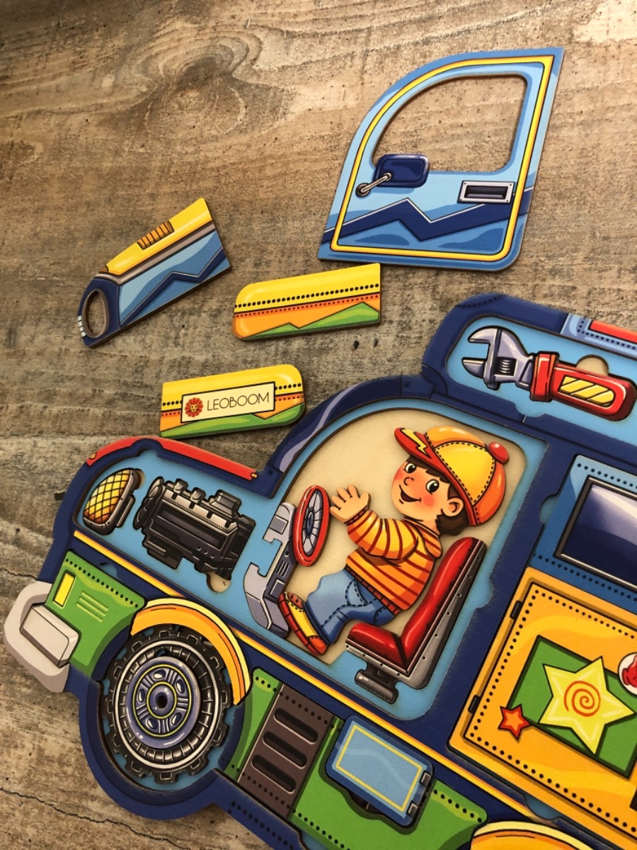 Деревянный пазл-вкладыш Smile Decor "Джип" (Леобум), 34 элемента, развивающая игра для малышей