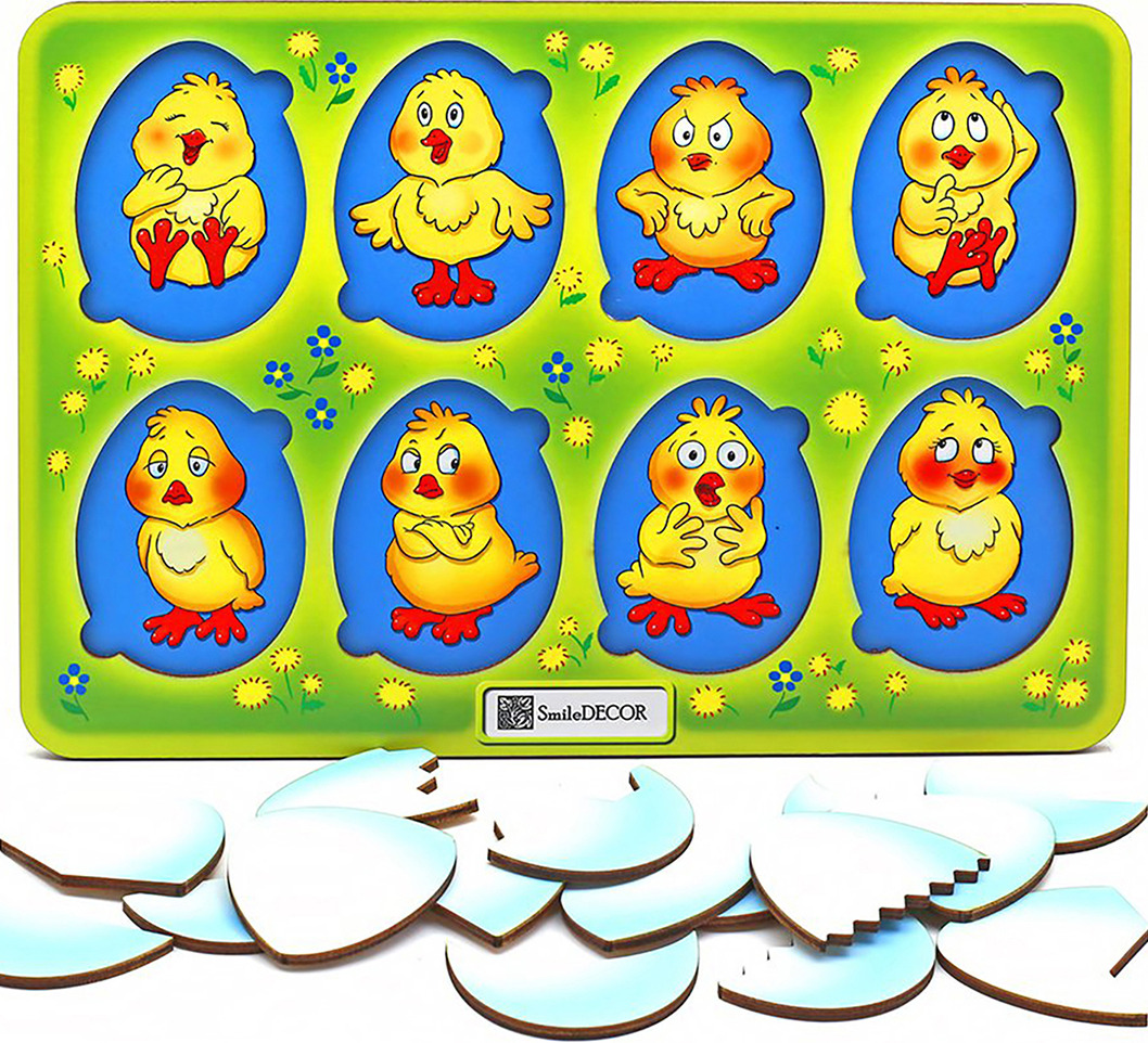 Деревянный пазл-вкладыш Smile Decor "Цыплята-ребята", в рамке для малышей