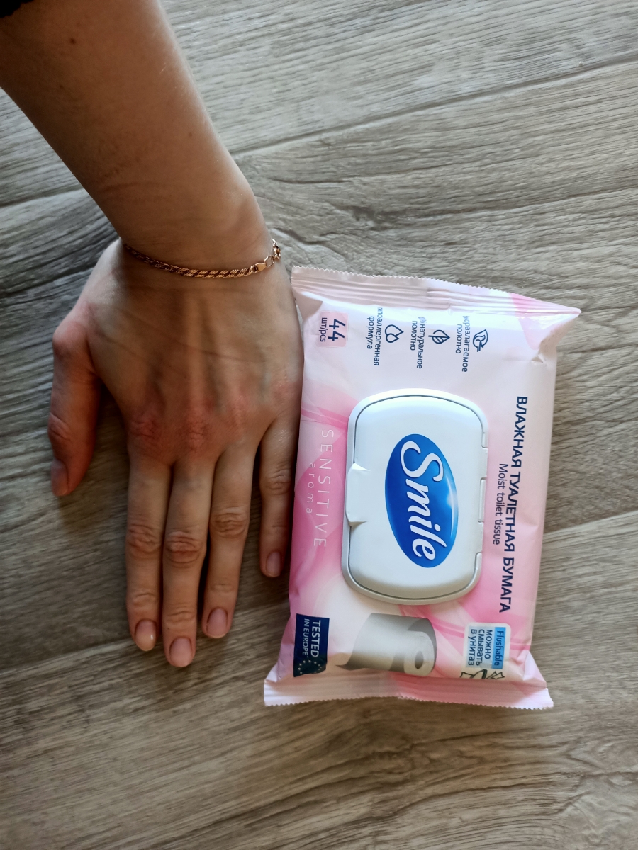 SMILE Влажная экологичная биоразлагаемая туалетная бумага "Sensitive", 220 штук (44Х5), с клапаном.