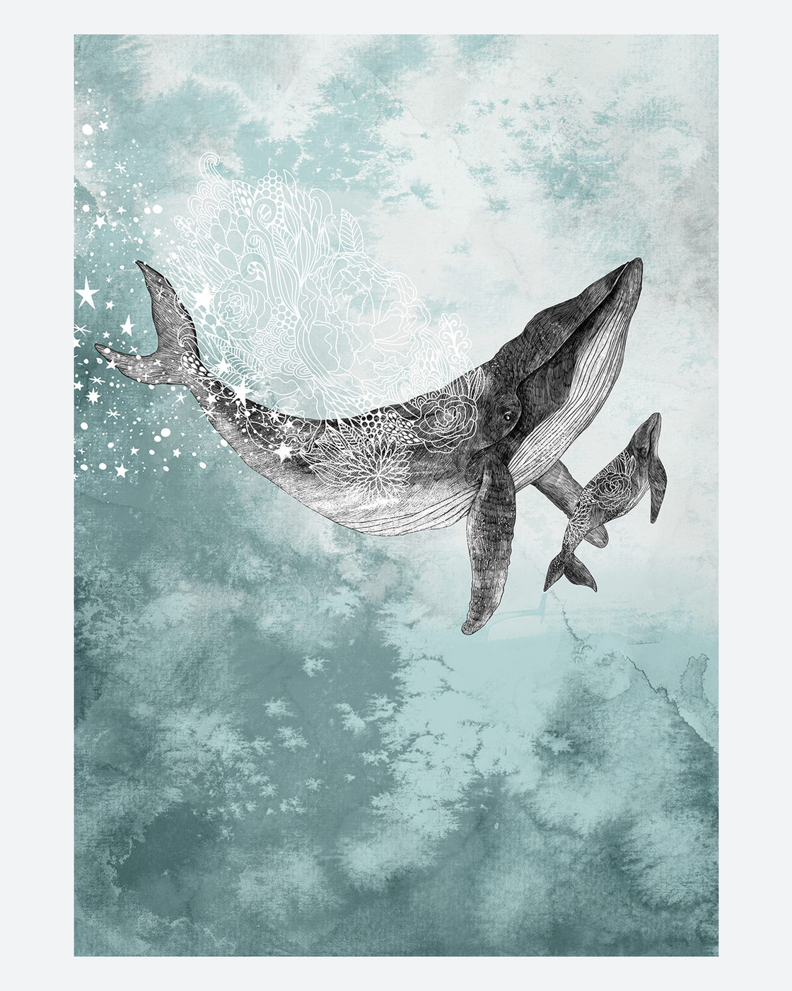 Постер SMILEWITHFRIENDS Кит с одним ребенком на бирюзовом фоне 30х40 на бумаге в тубусе