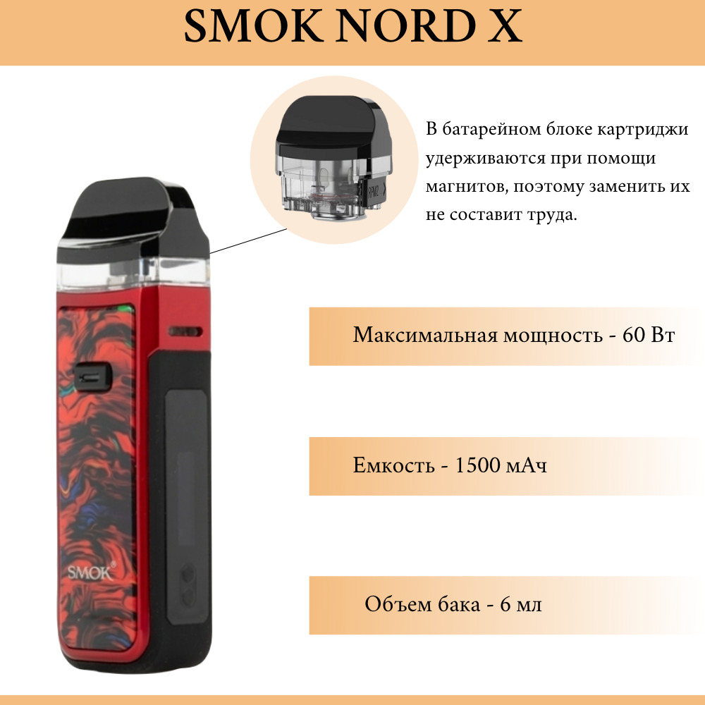SMOK Nord X Pod Kit, 1500 мАч (Fluid Red) без жидкости