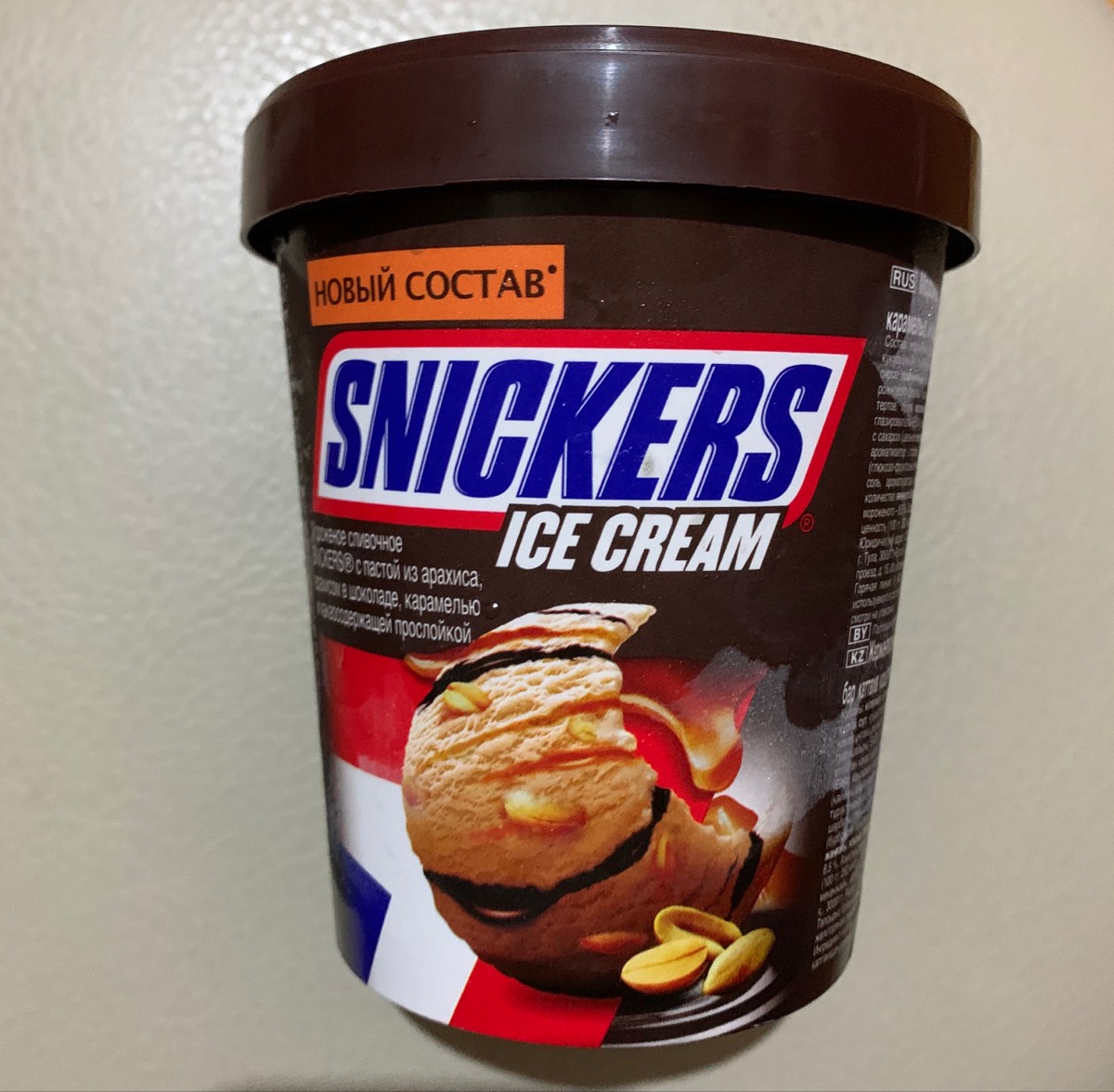 Мороженое "Snickers" сливочное с карамелью арахисом и шоколадной прослойкой, 375г