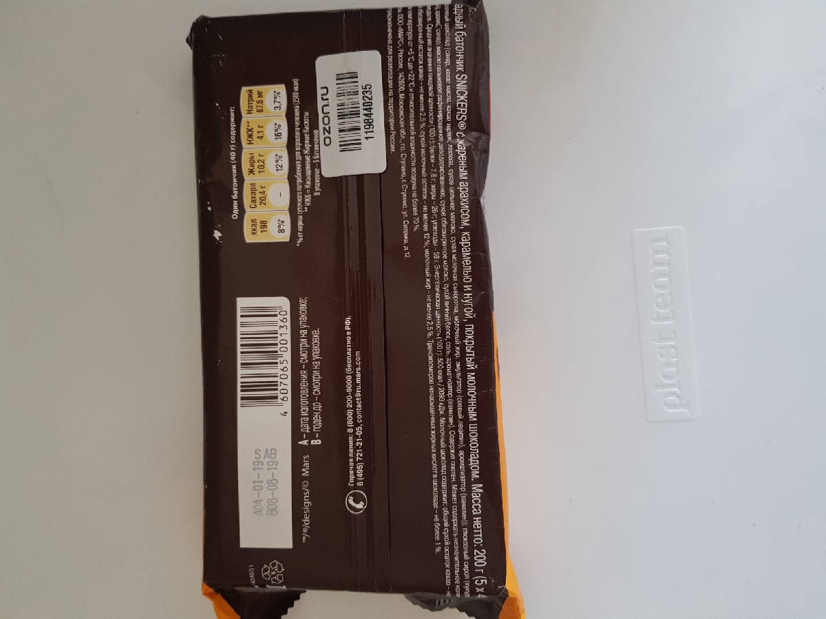 Шоколадный батончик Snickers, пачка, 4 шт, по 40 г