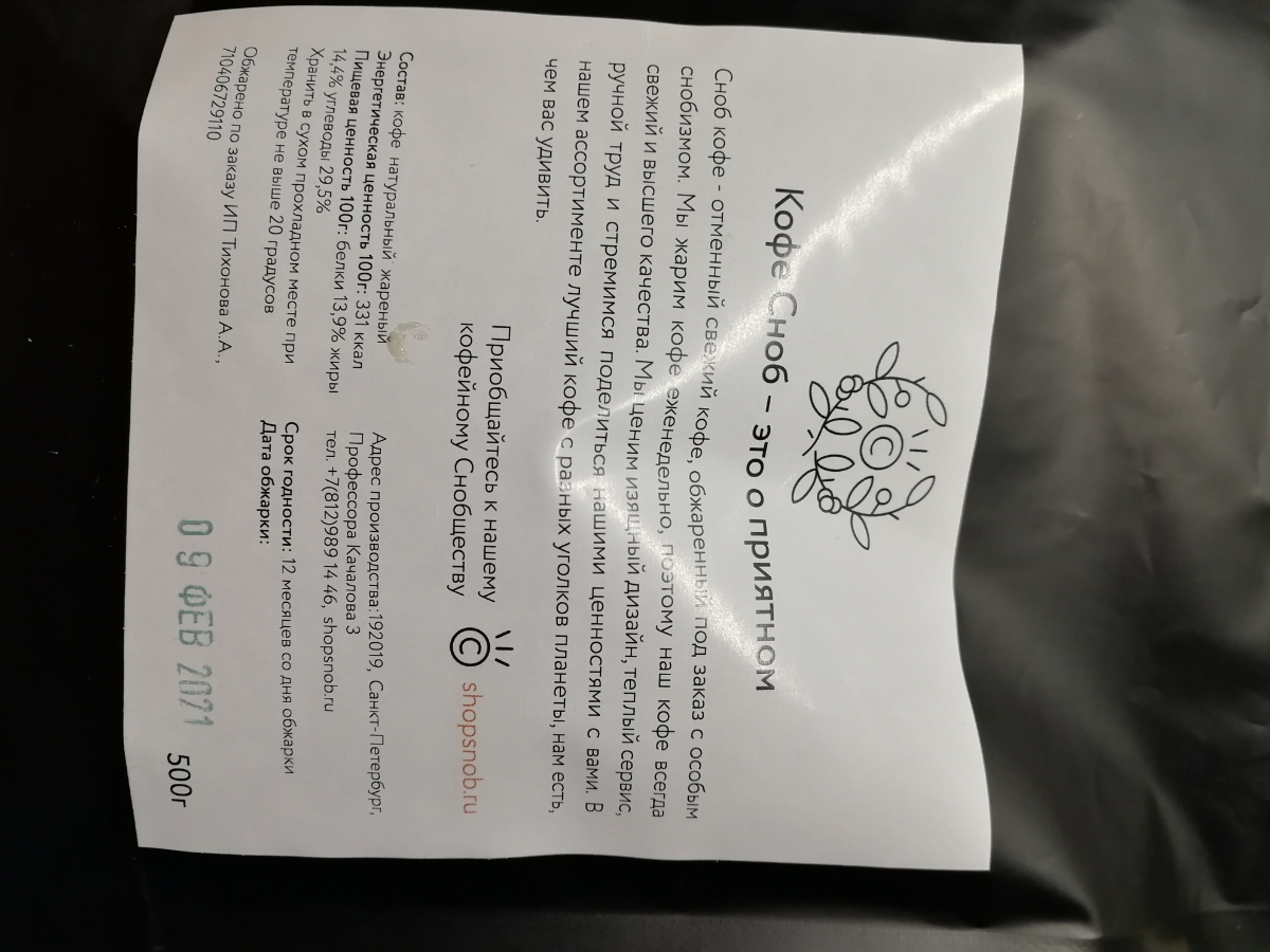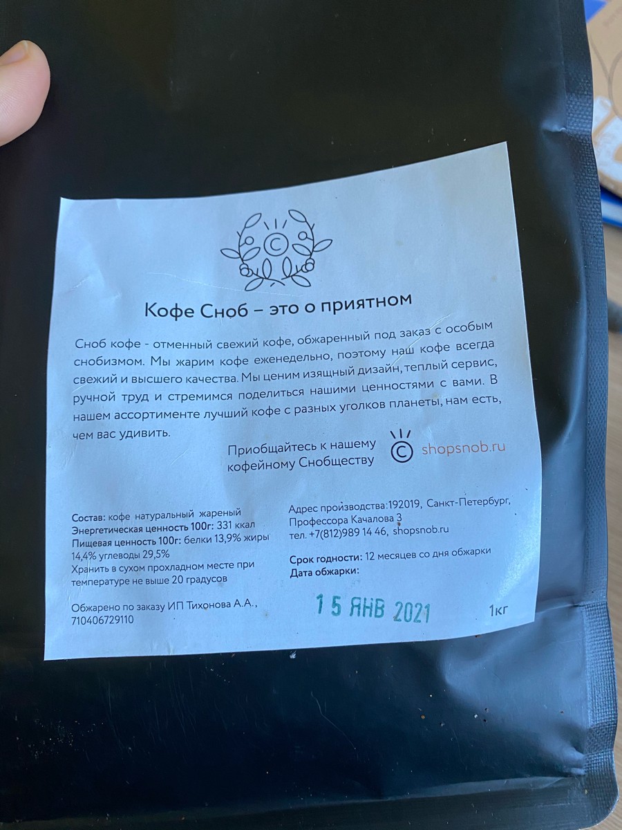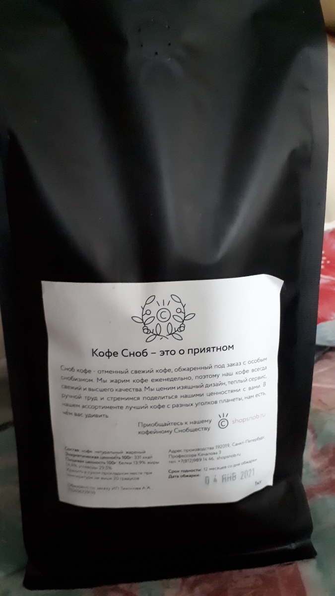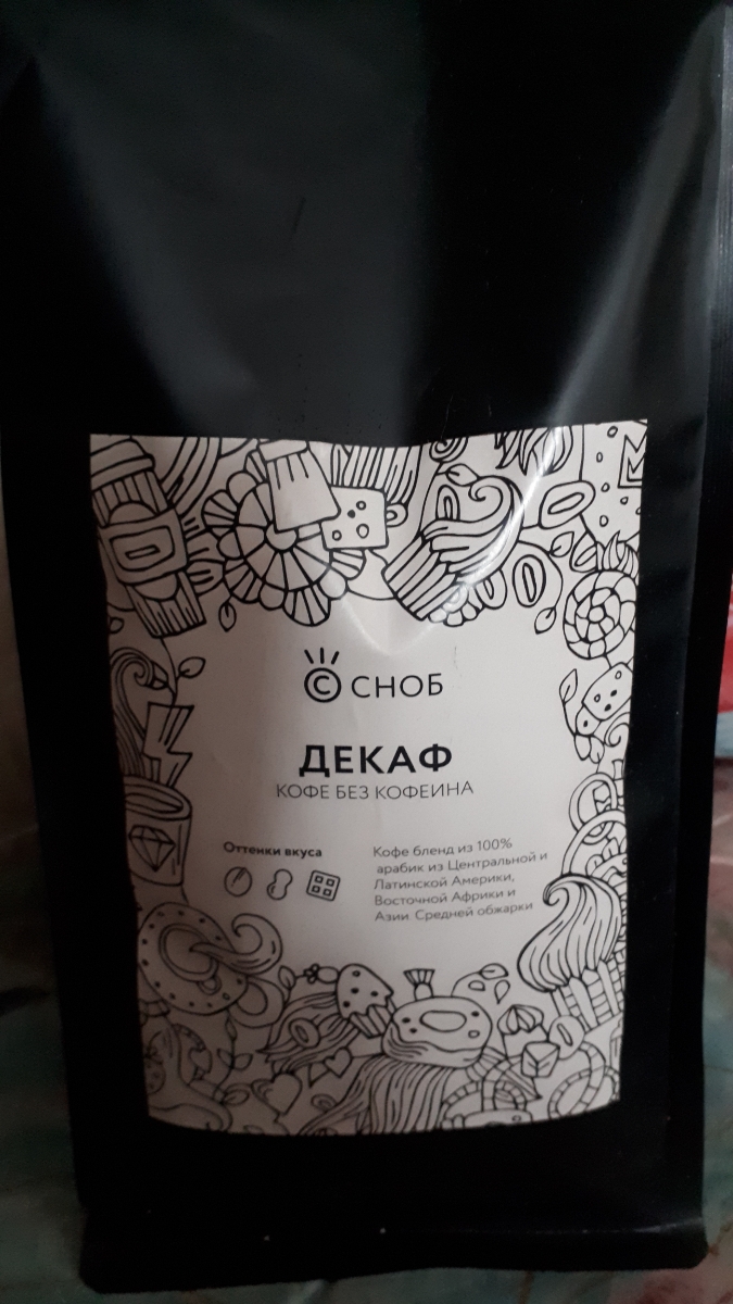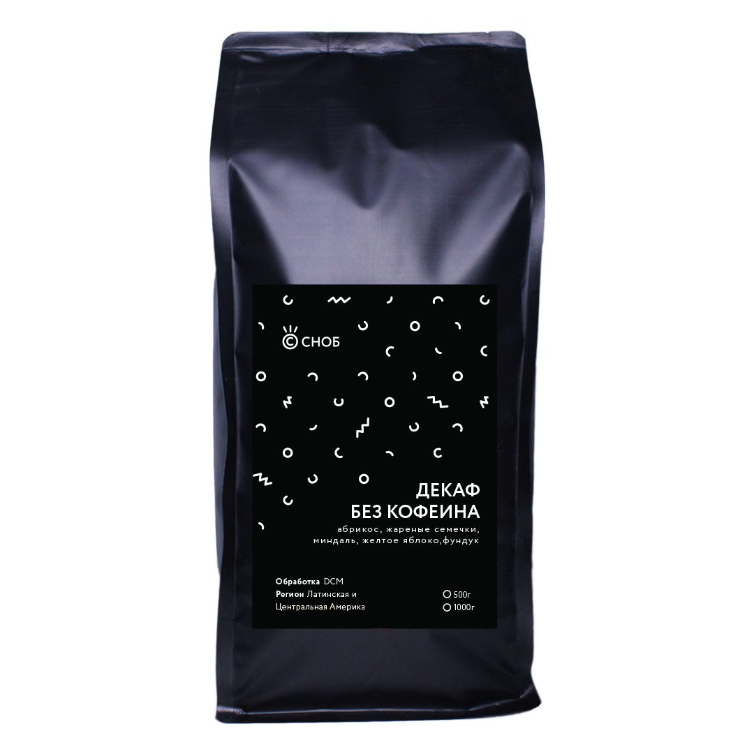 Свежеобжаренный кофе без кофеина Сноб, Декаф, 1кг, 100% Арабика