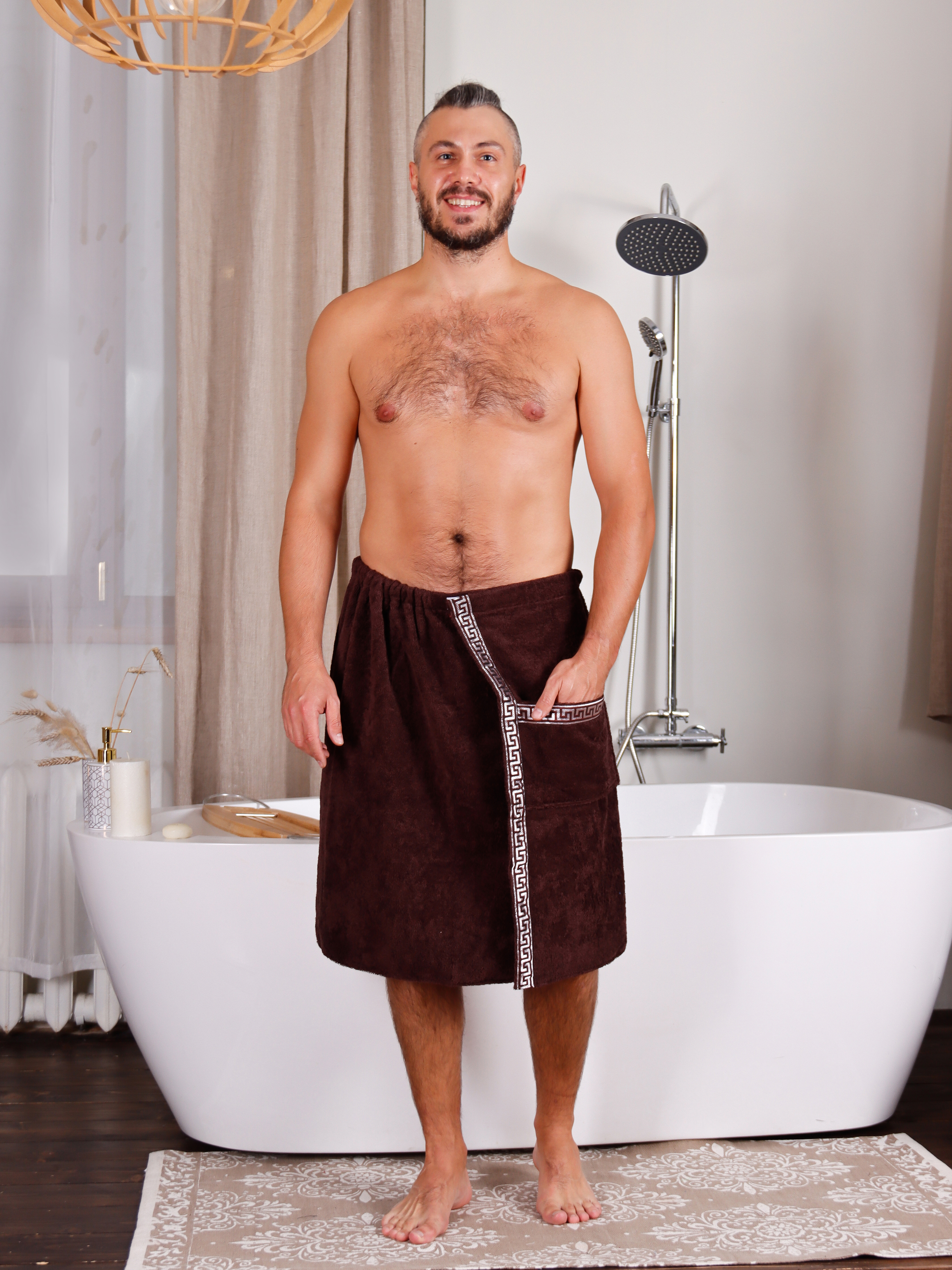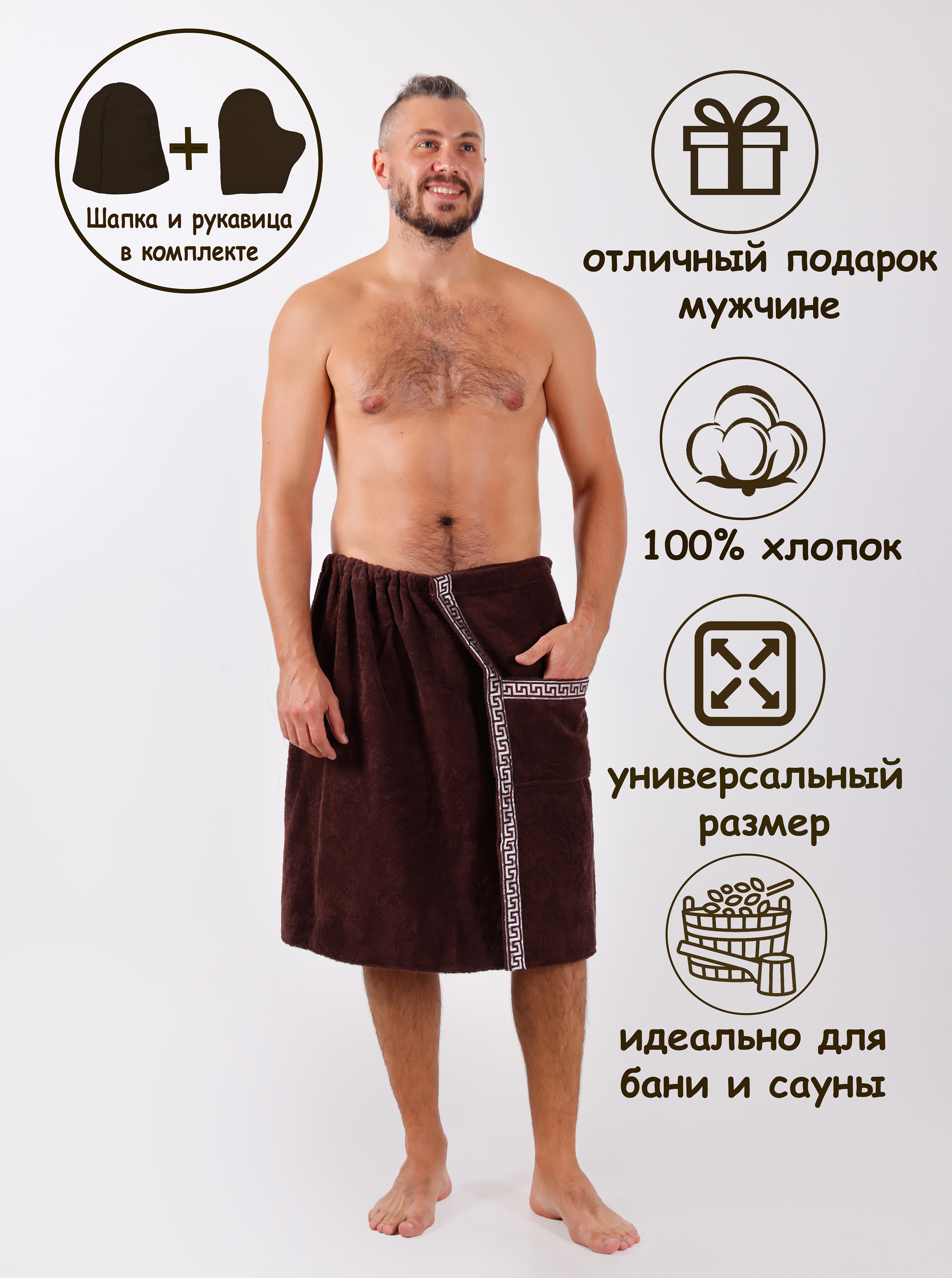 Килт банный мужской махровый темно-коричневый