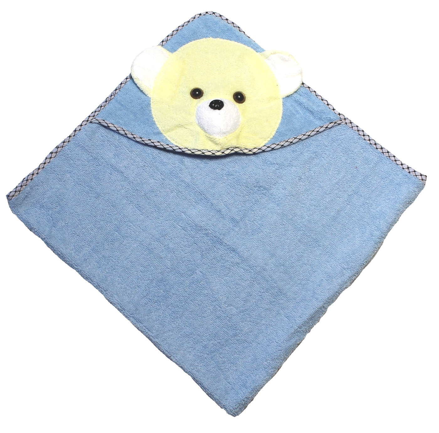 Полотенце банное Детское махровое полотенце с угловым капюшоном Хлопок 85x85 см, голубой