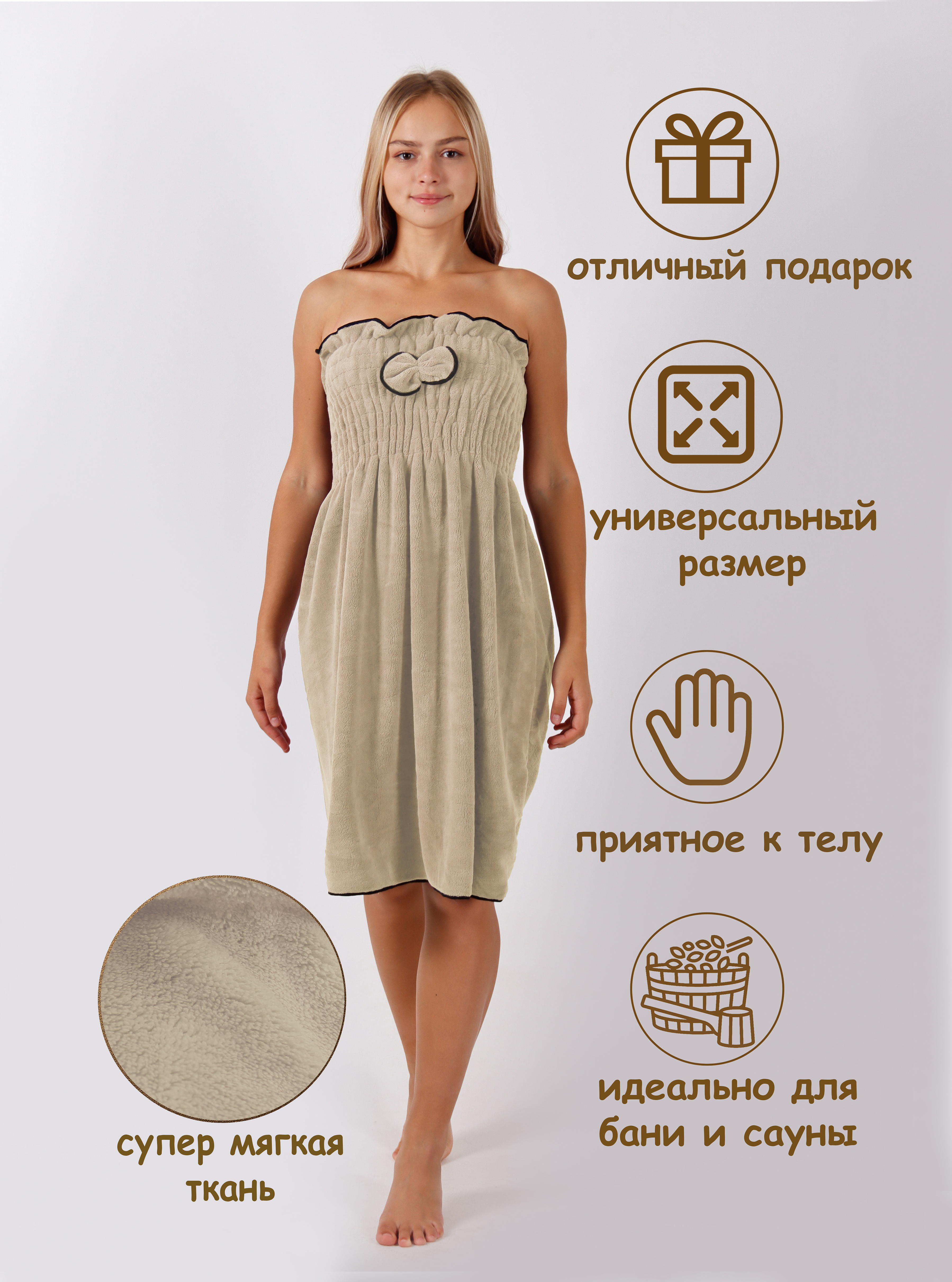 Килт банный женский махровый бежевый