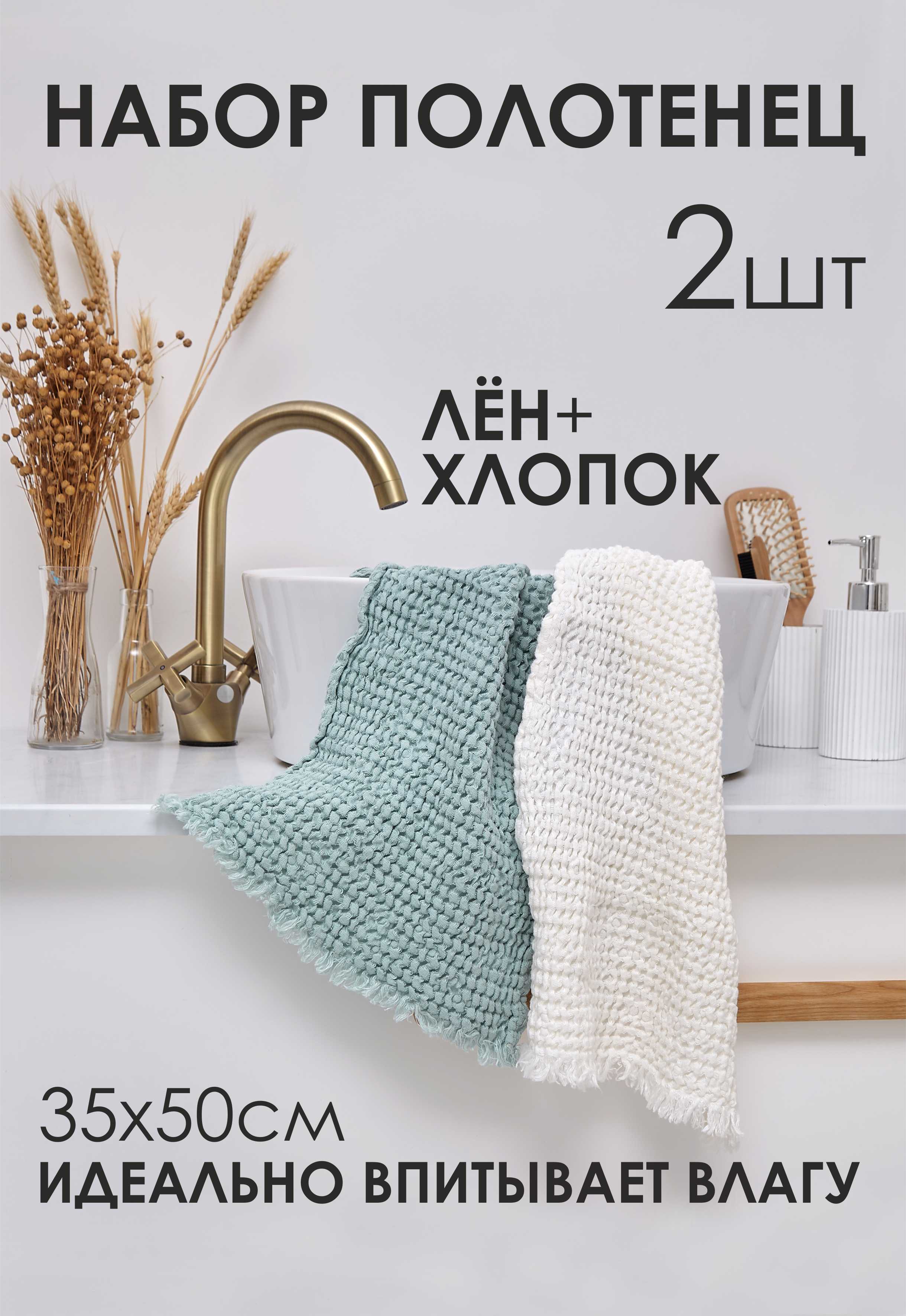 Полотенце для ванной, Набор полотенец для лица, рук или ног Soft Joys Зефир набор Лен, Хлопок 35x50 см, 2 шт.