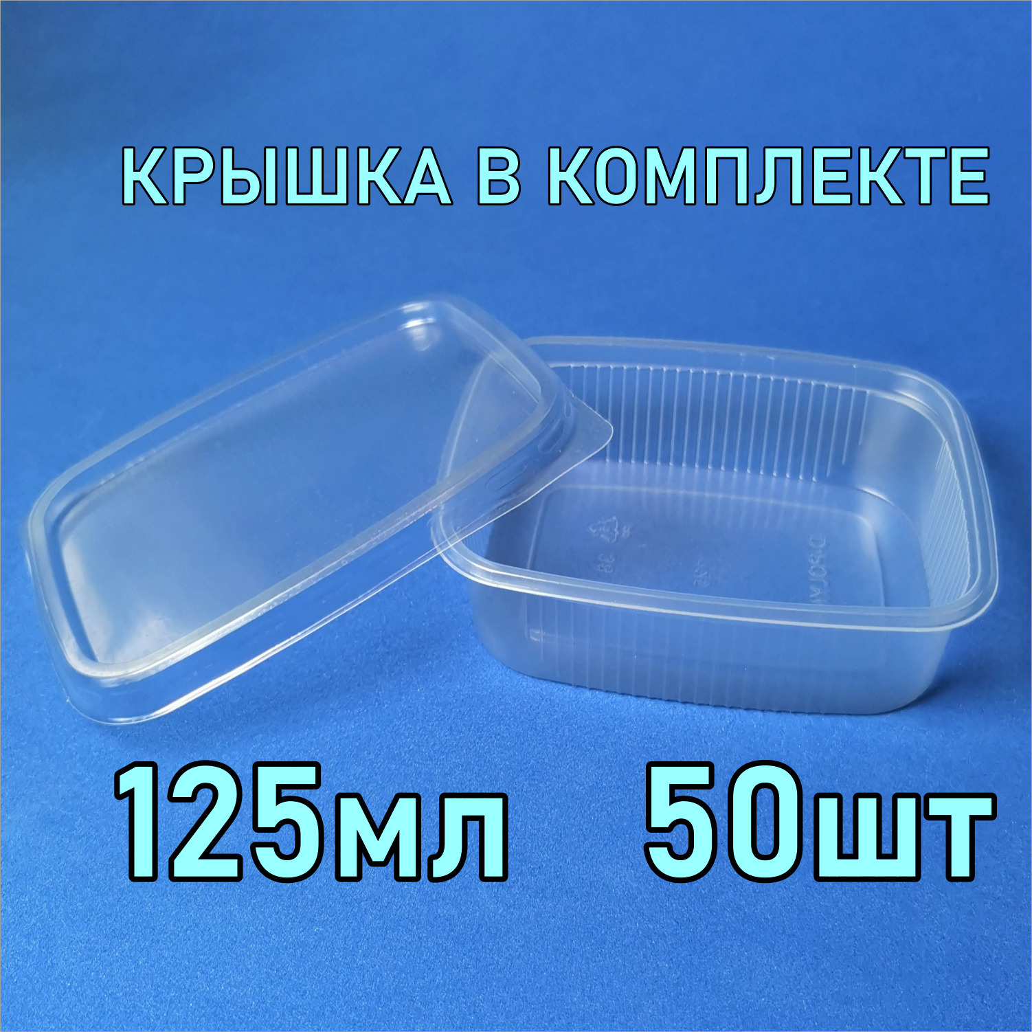 Одноразовый контейнер с крышкой 125 мл, 50 шт для хранения и заморозки