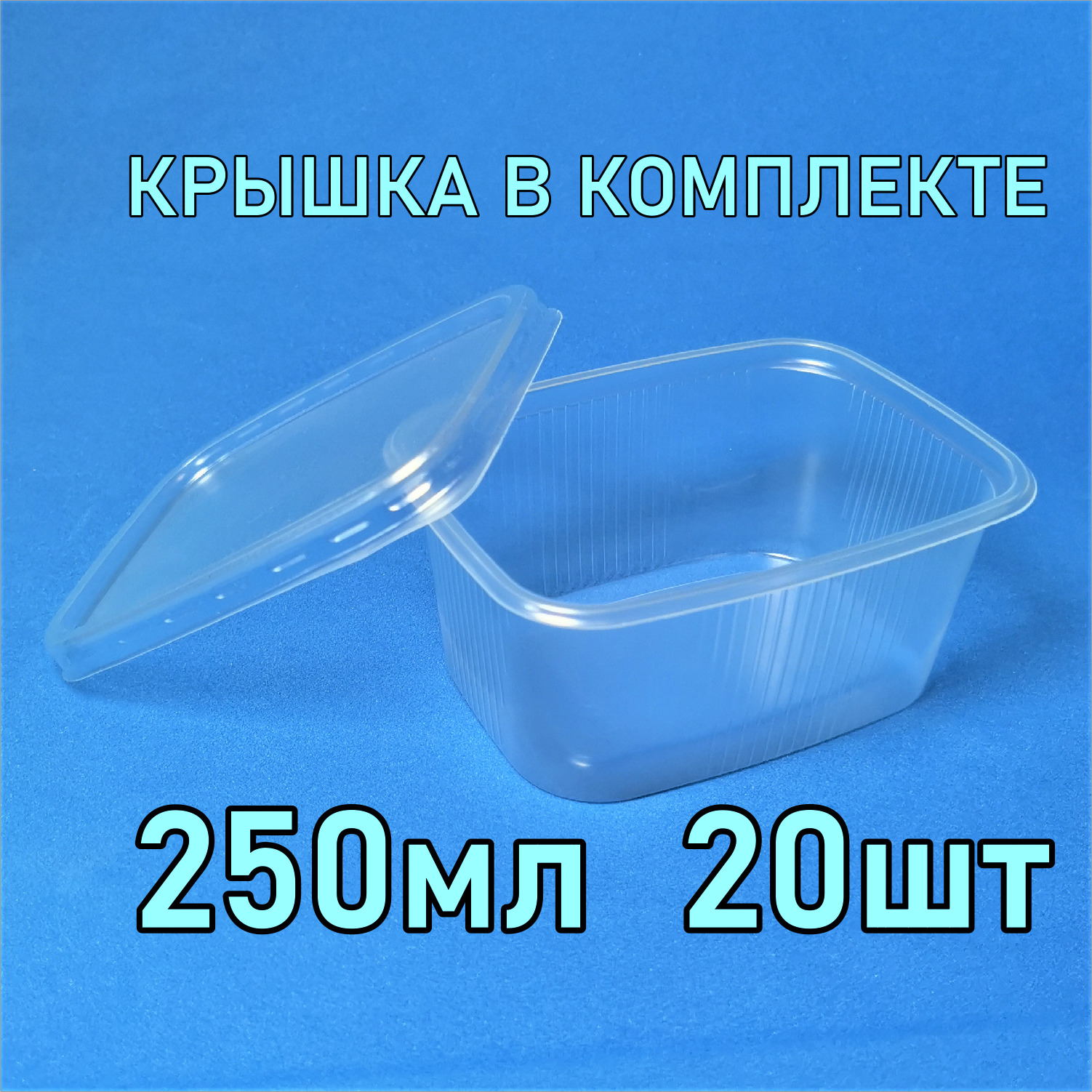 Одноразовый контейнер с крышкой 250 мл, 20 шт для хранения и заморозки