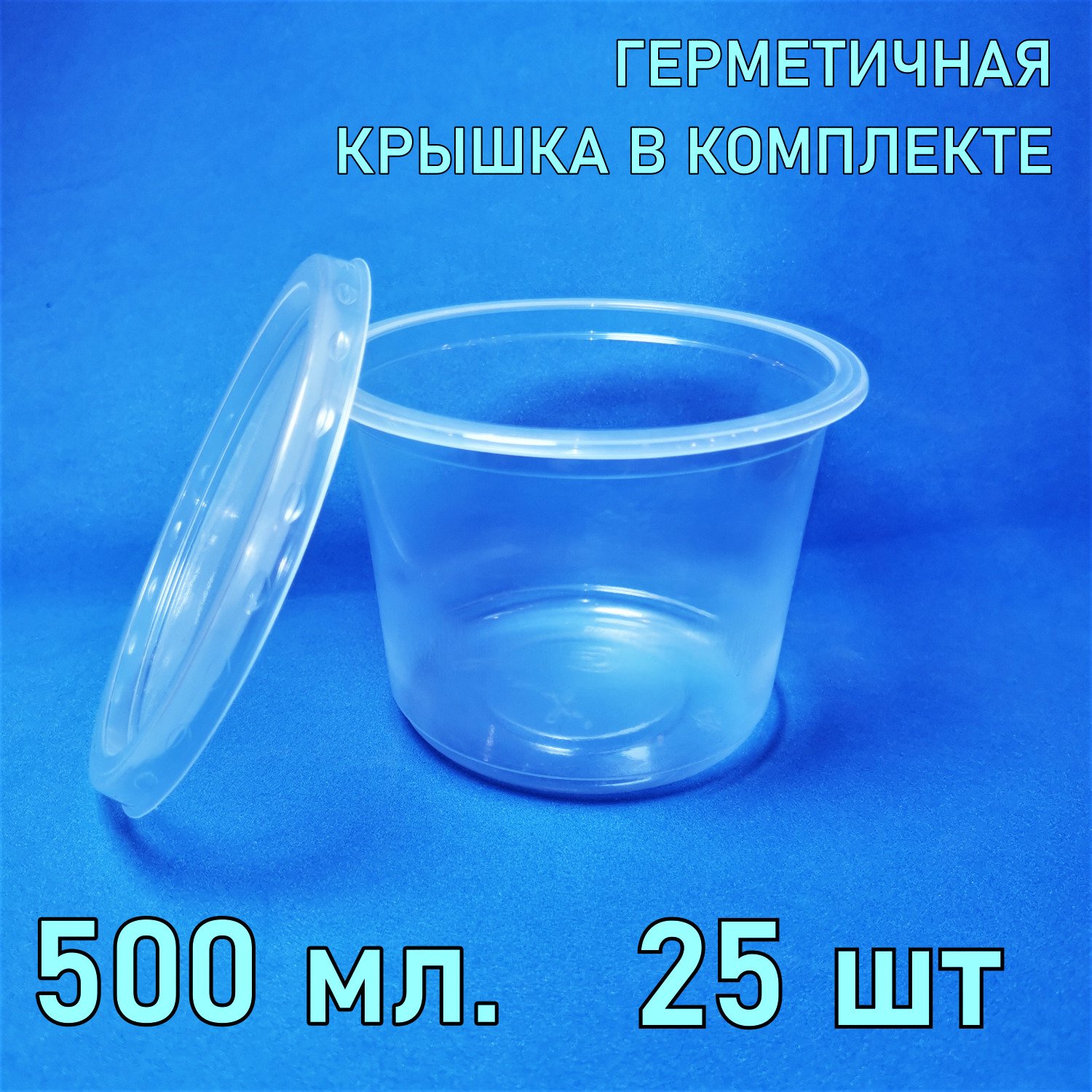 Одноразовый контейнер (супница) 500 мл, 25 шт с герметичной крышкой для супа