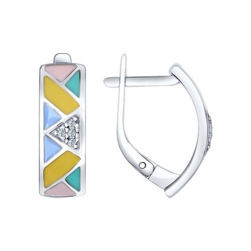 Серебряные серьги с фианитами и эмалью SOKOLOV (модель 94022633)
