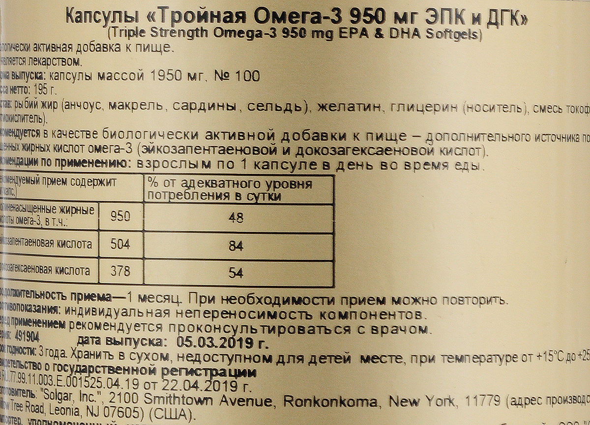 Solgar, Omega 3 "Омега-3", 950 мг, 100 капсул