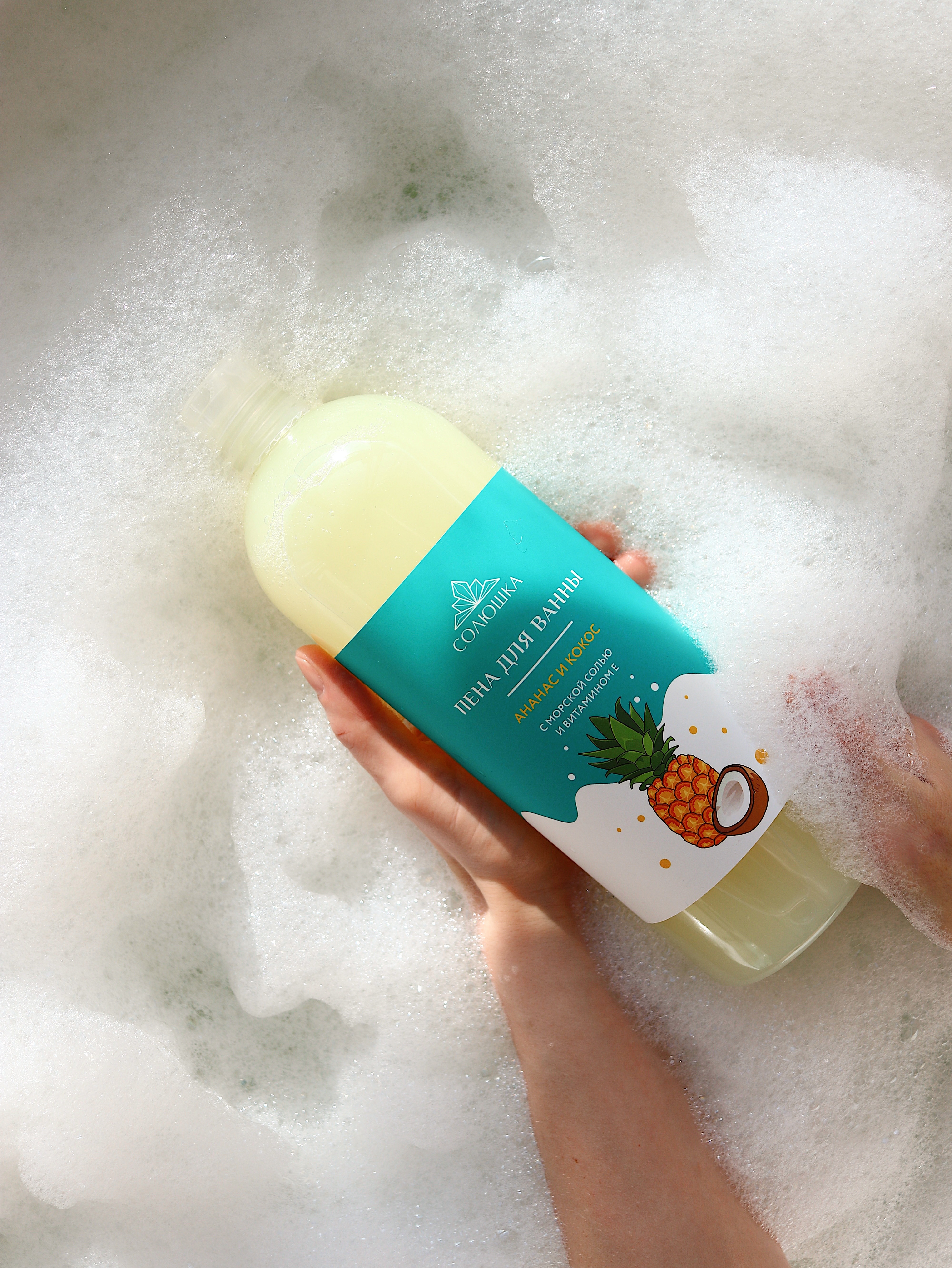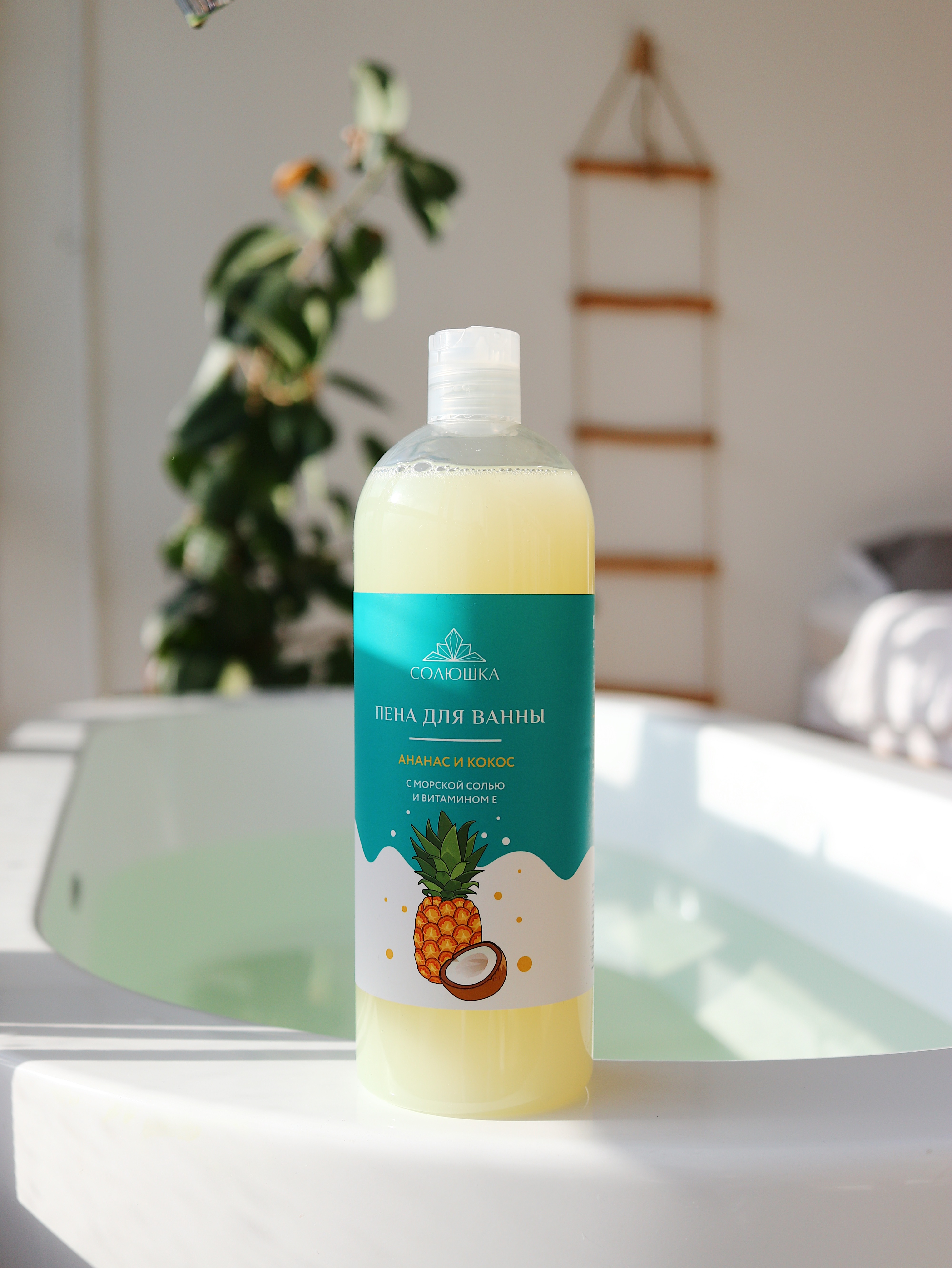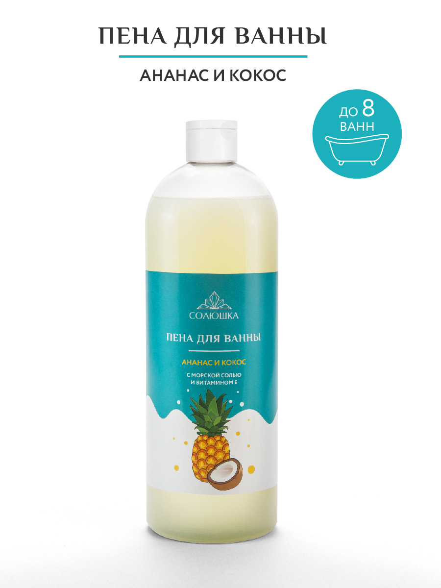 Солюшка Пена для ванны детская для купания с ароматом ананас кокос. Большой объём 1000 мл.