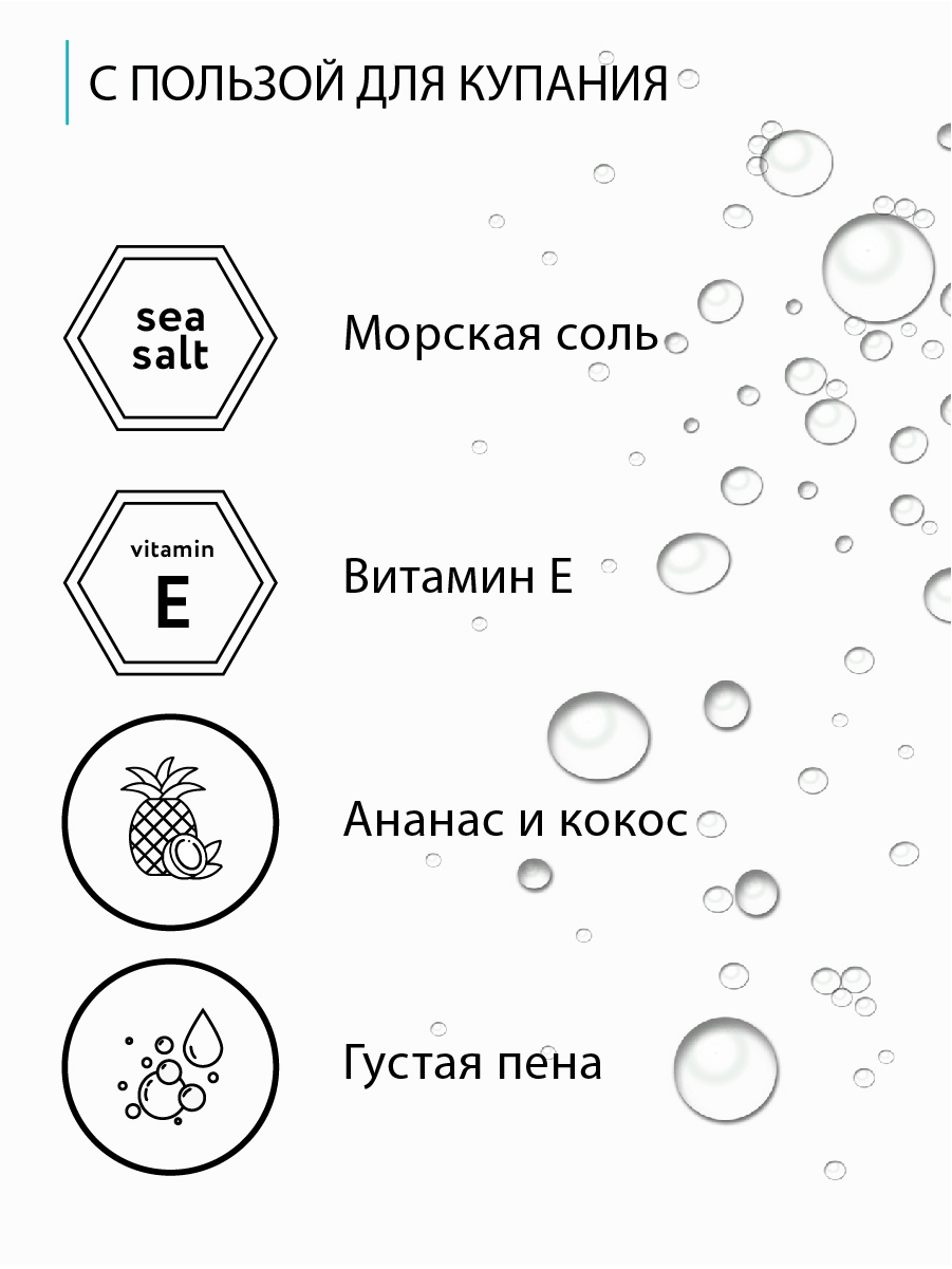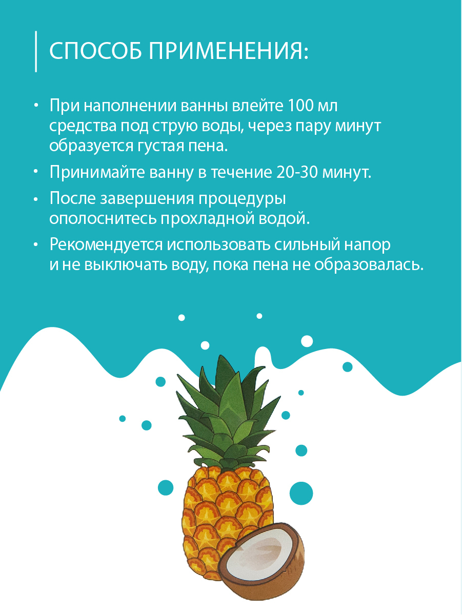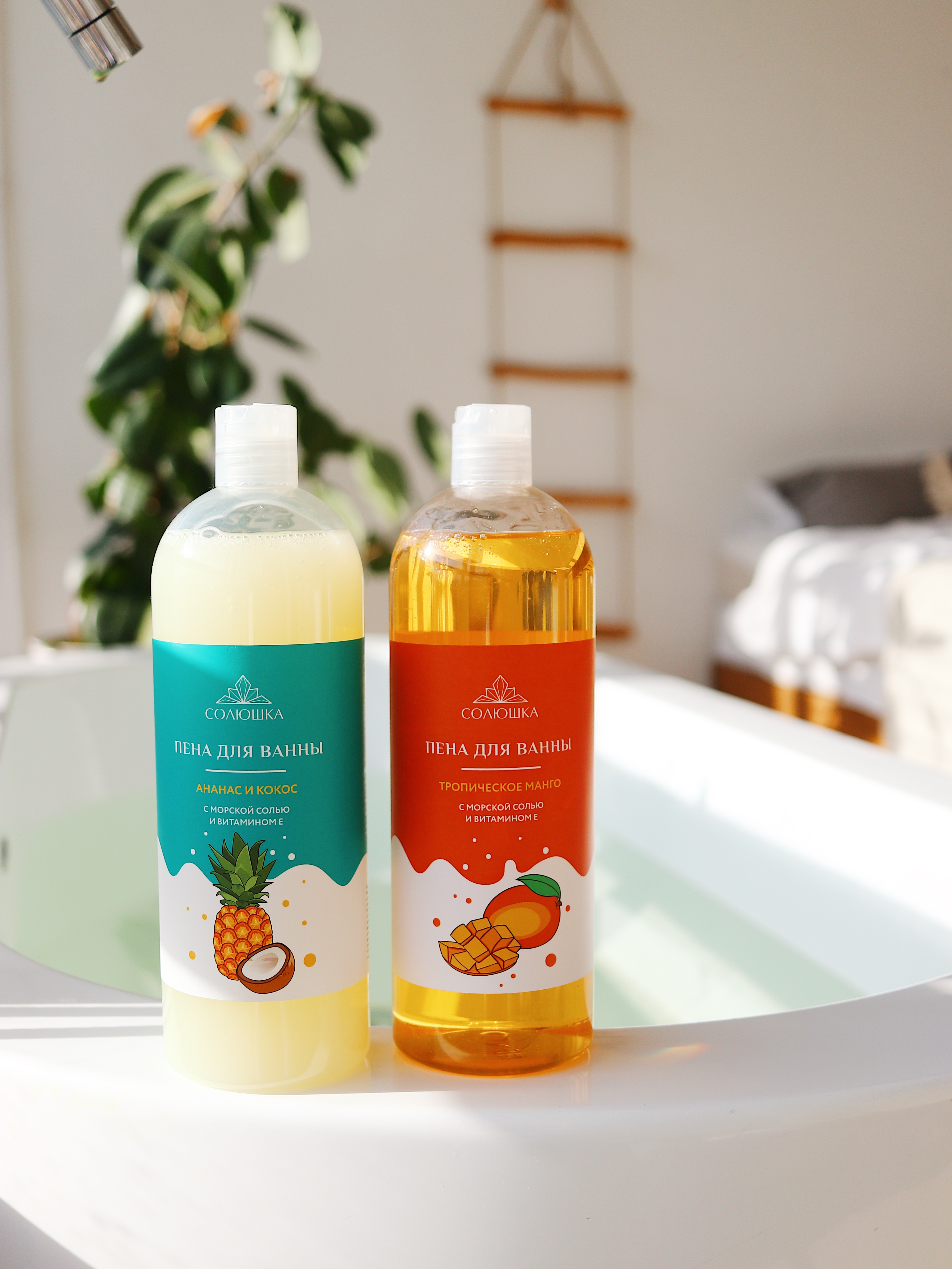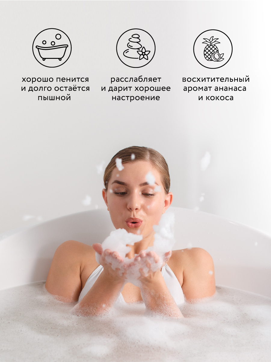 Солюшка Пена для ванны детская для купания с ароматом ананас кокос. Большой объём 1000 мл.