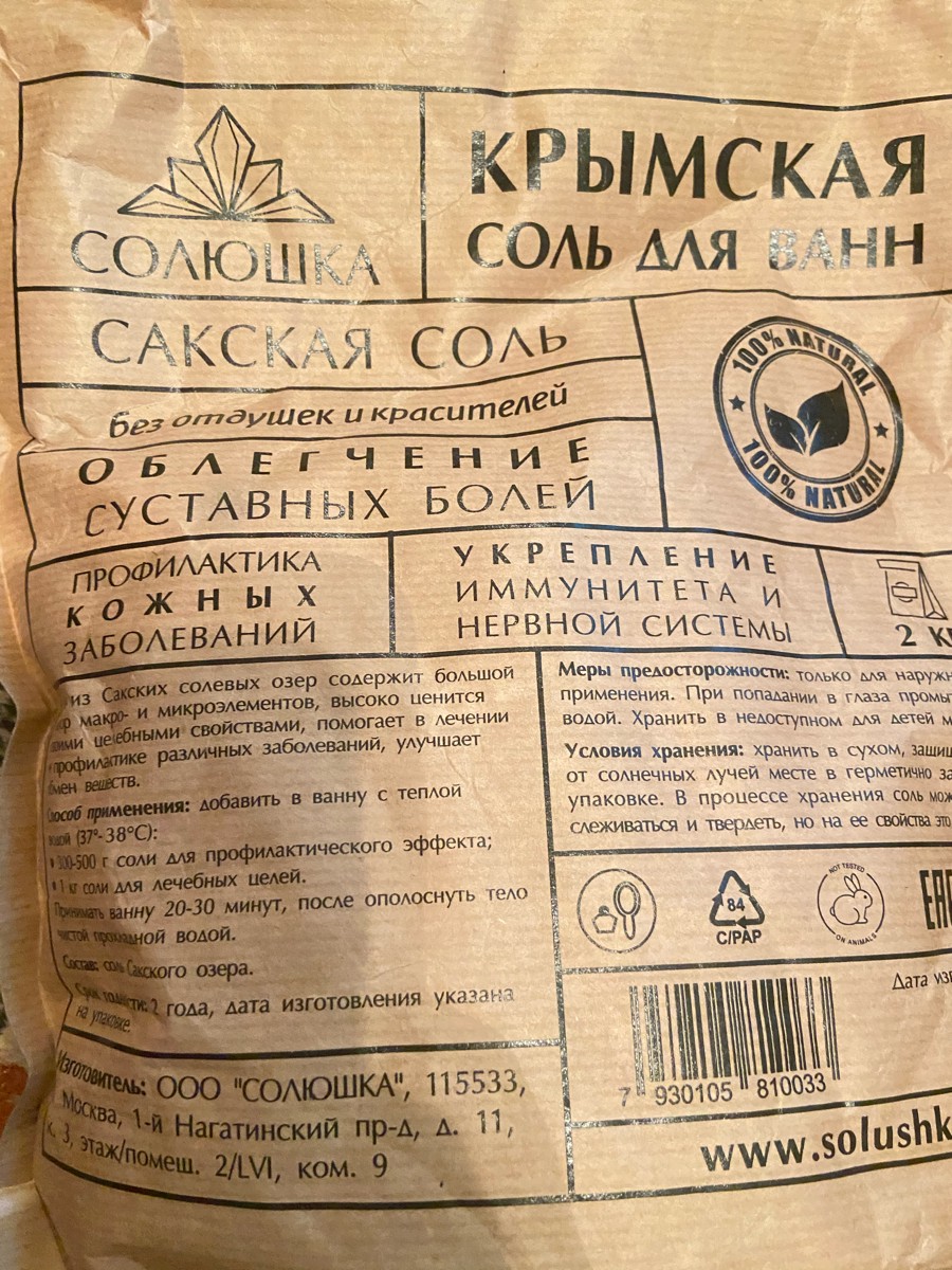 СОЛЮШКА Крымская(Сакская) соль для ванны. Морская соль для ванн. 4кг