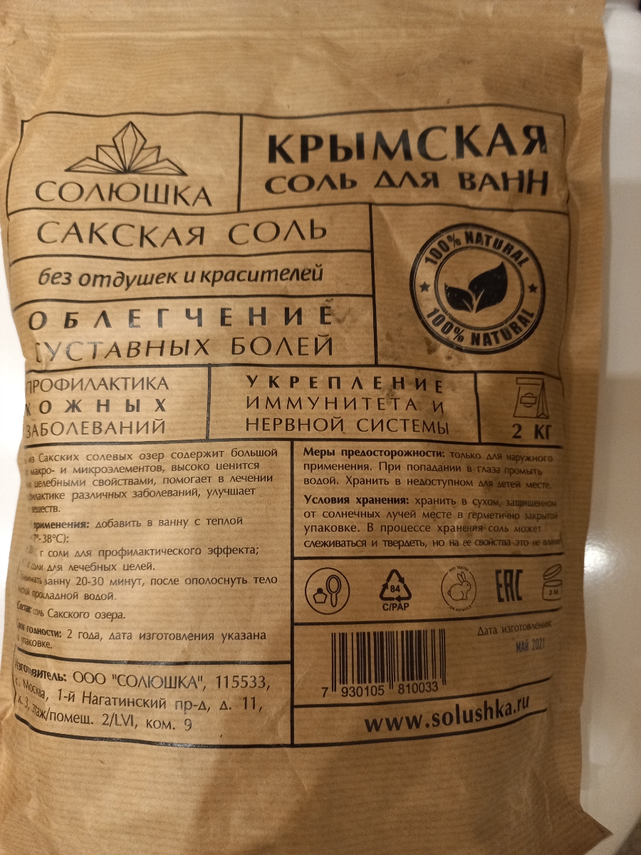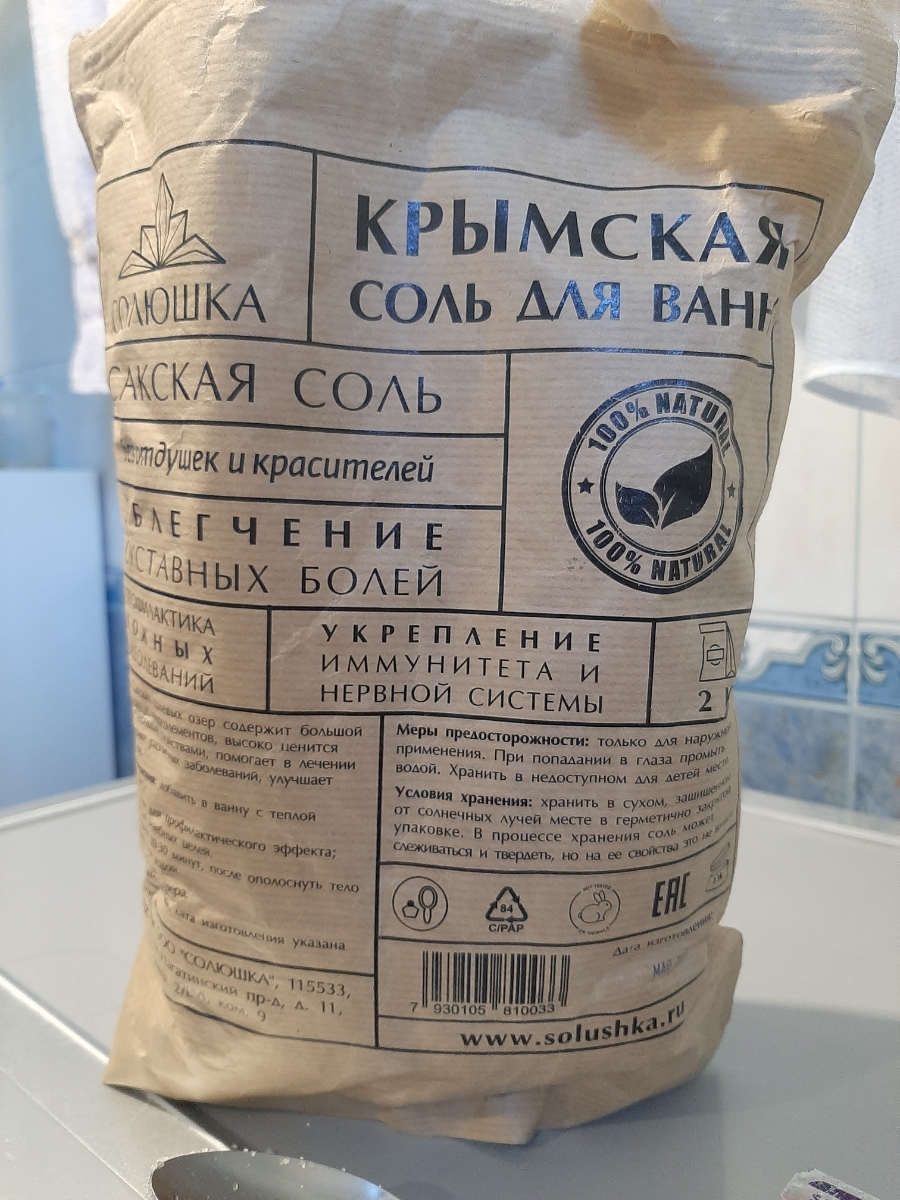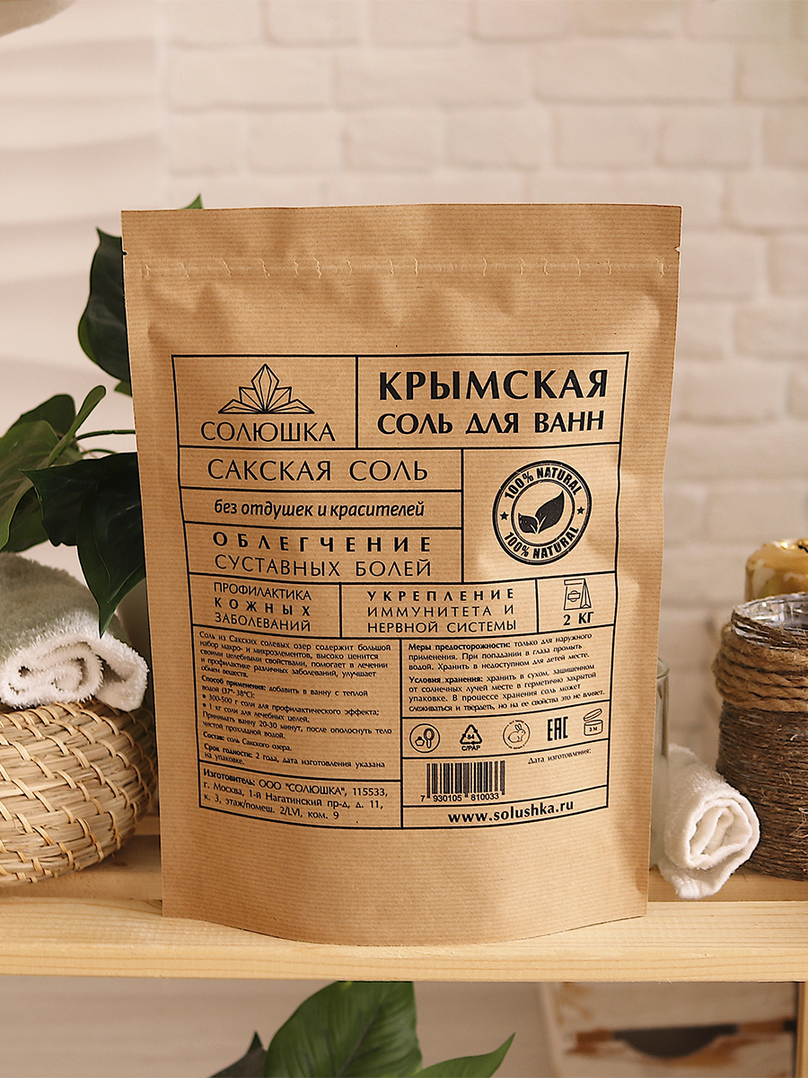 СОЛЮШКА, Крымская соль (Сакская) соль для ванны, морская. 1кг