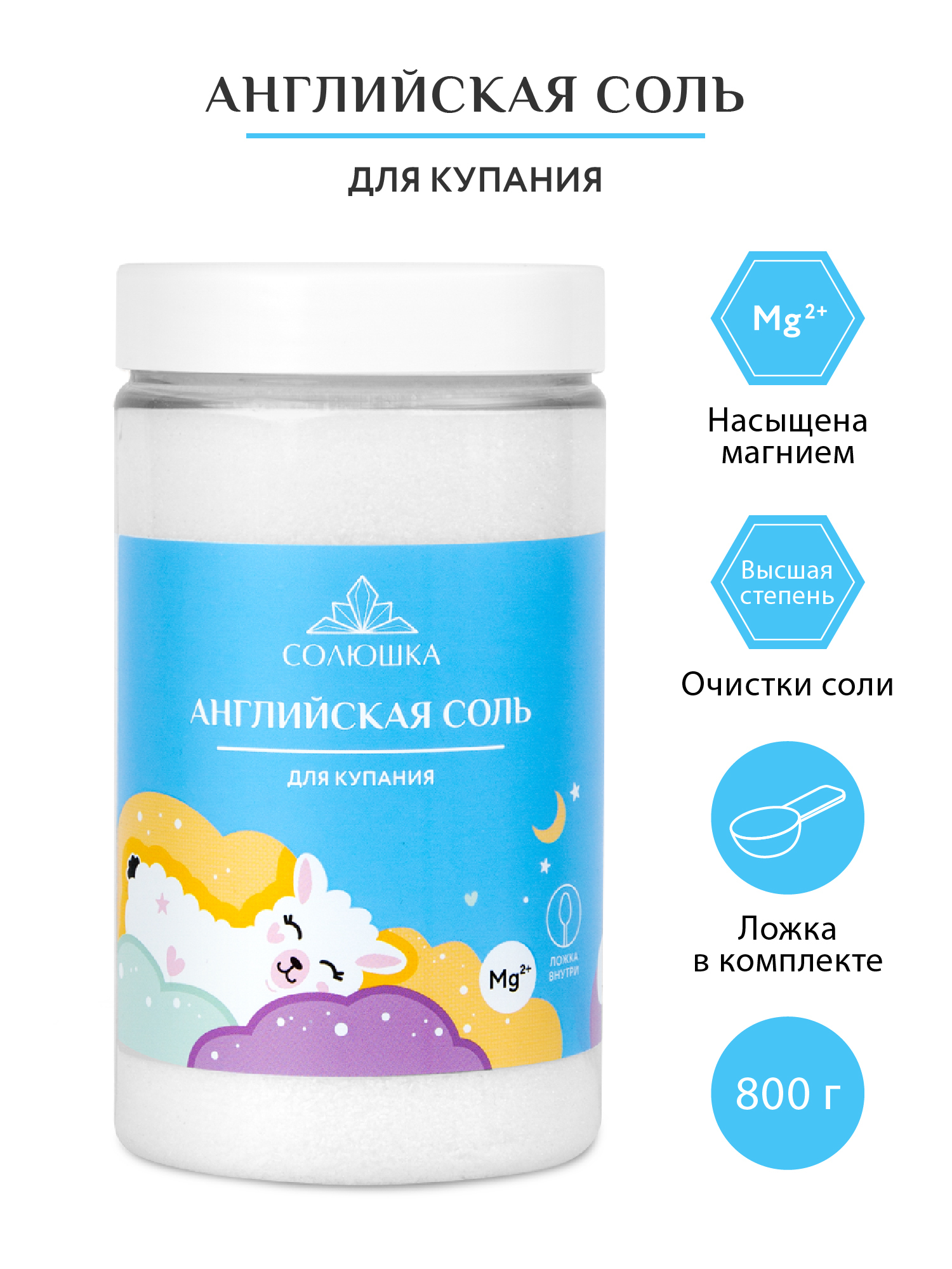 СОЛЮШКА Английская детская соль для ванны с магнием для купания. Магниевая соль Эпсом. 800 гр.