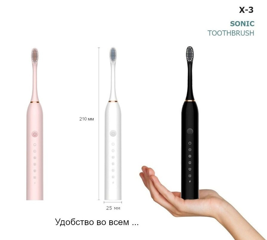 Электрическая зубная щетка SONIC TOOTHBRUSH X-3 , черный