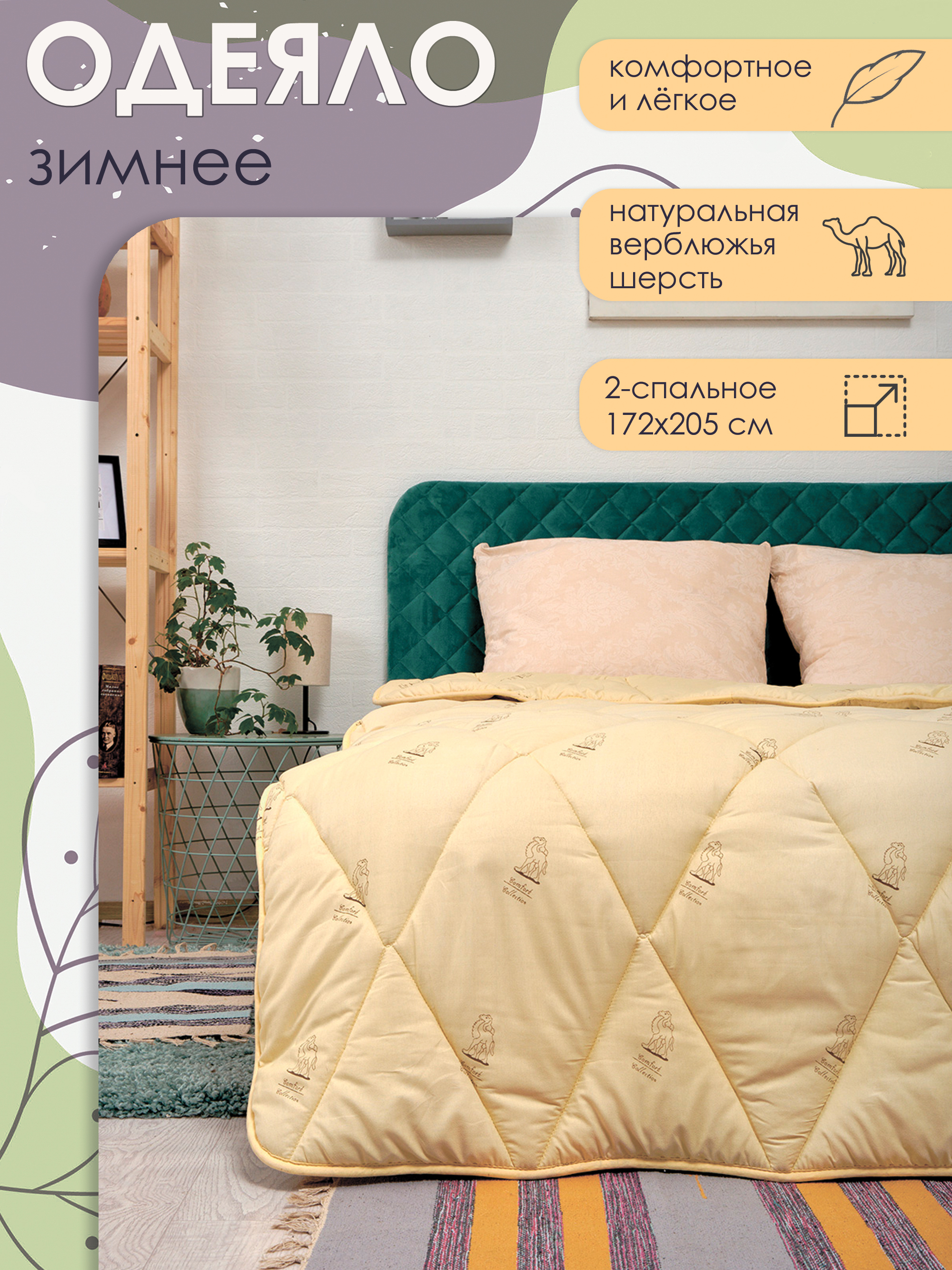 Одеяло СОННАЯ СИМФОНИЯ Верблюжья шерсть 172x205, Зимнее, с наполнителем Верблюжья шерсть
