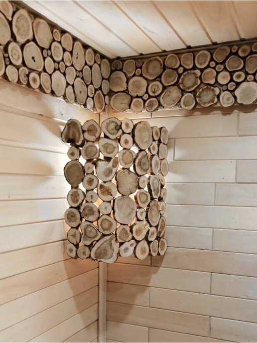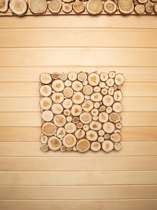 Панно для бани 40x40 см, можжевеловое полотно, панно из можжевельника