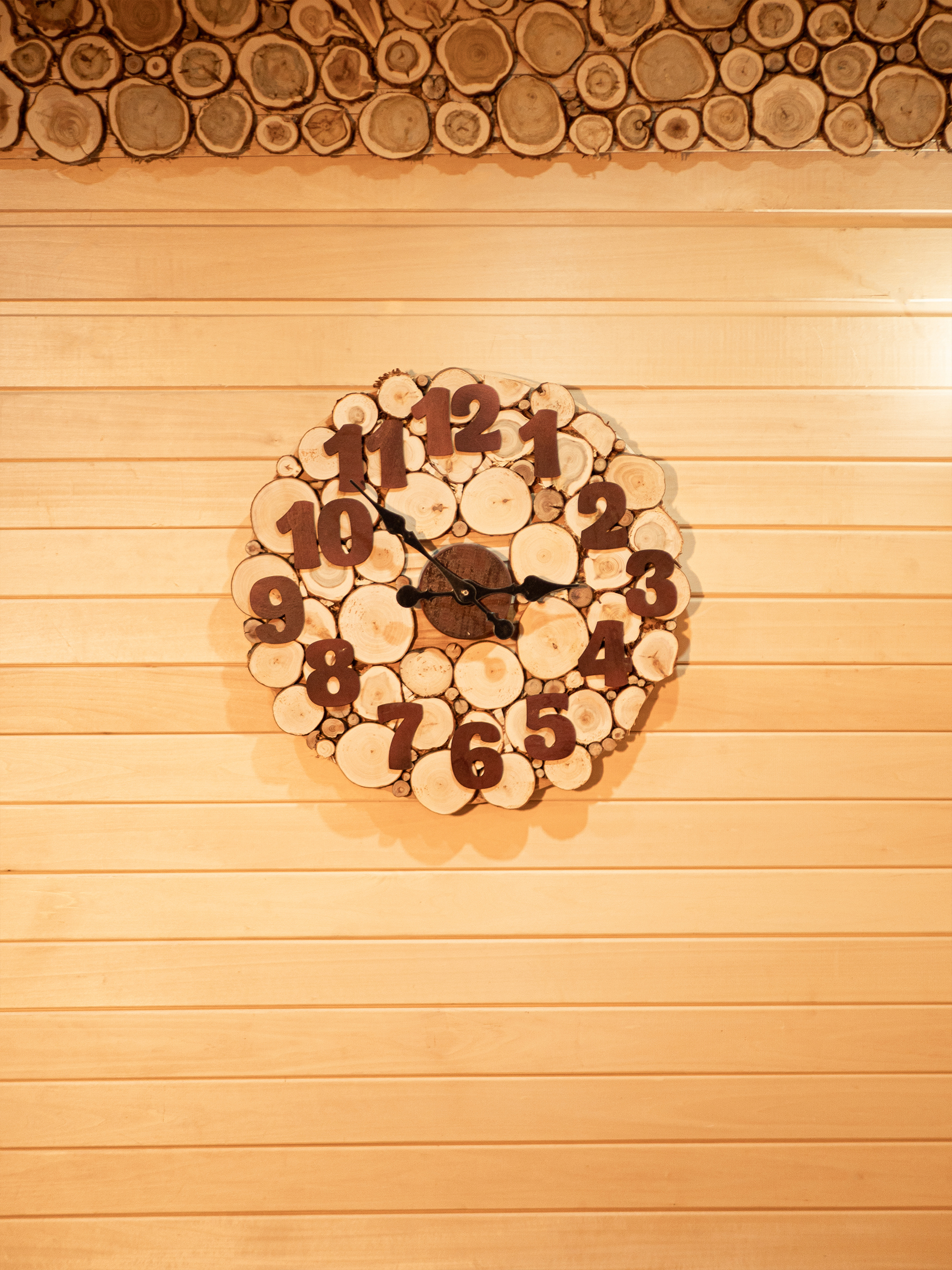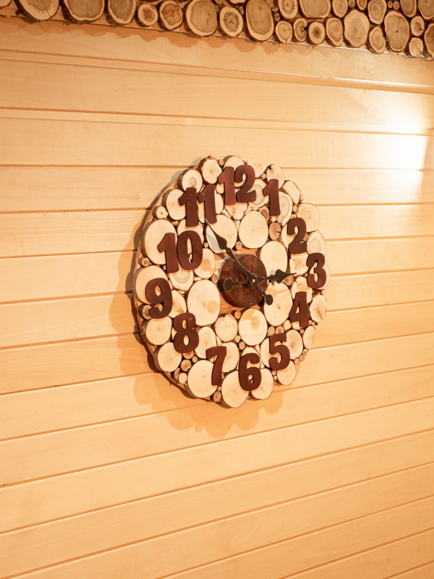 Круглые часы для бани и сауны из можжевельника и ольхи