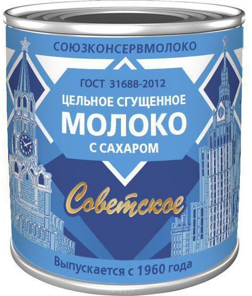 Молоко сгущенное с сахаром 8,5% Советское 380гр ж/б АМКК 4шт