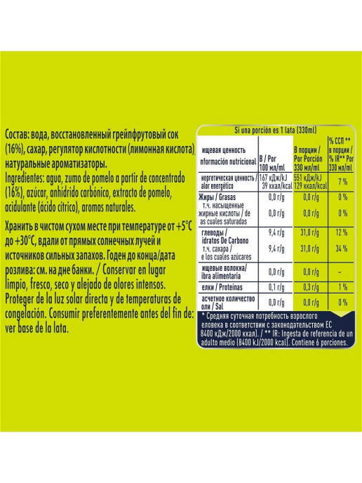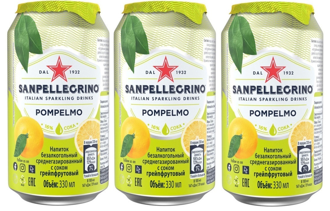 Газированный напиток "San Pellegrino" Грейпфрут 330мл. х 3 шт. (Италия)