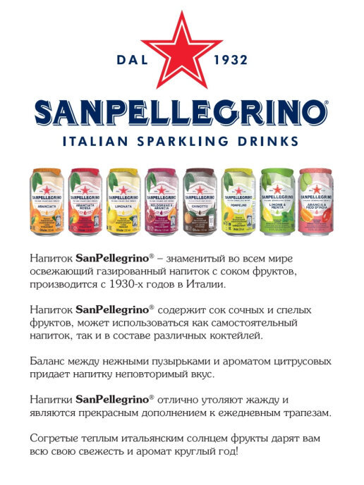 Напиток газированный Sanpellegrino(Сан Пеллегрино) Померанец 0,2 л х 4 шт, стекло