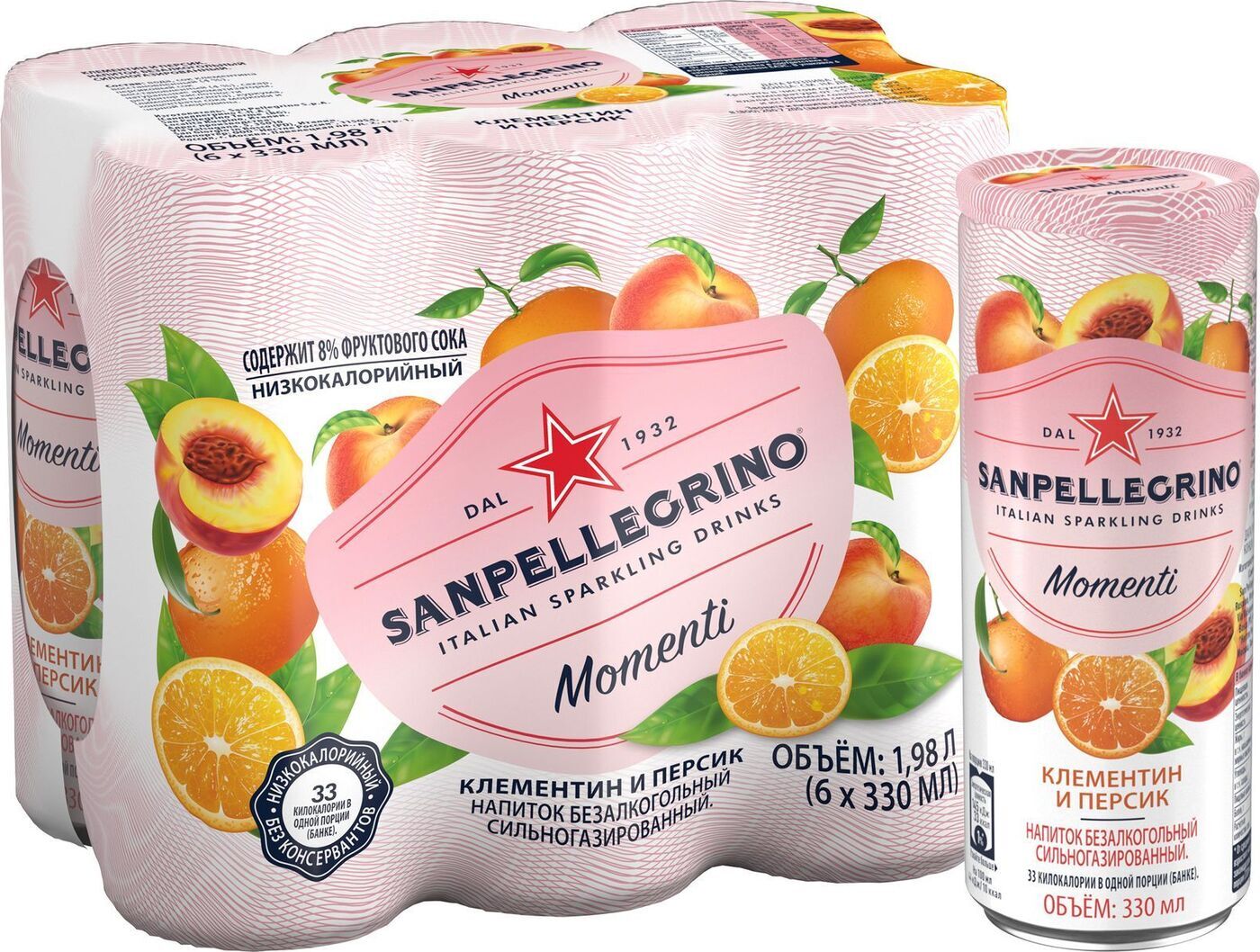 Напиток низкокалорийный Sanpellegrino (Сан Пеллегрино) Momenti (Мандарин и Персик) 6 шт по 330 мл