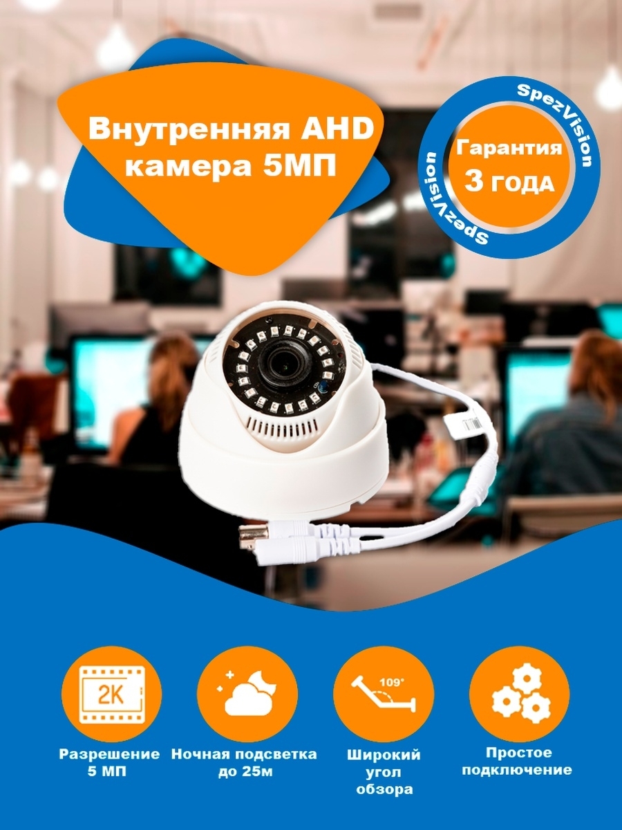 Внутренняя AHD камера видеонаблюдения 5Мп (2592 x 1944)