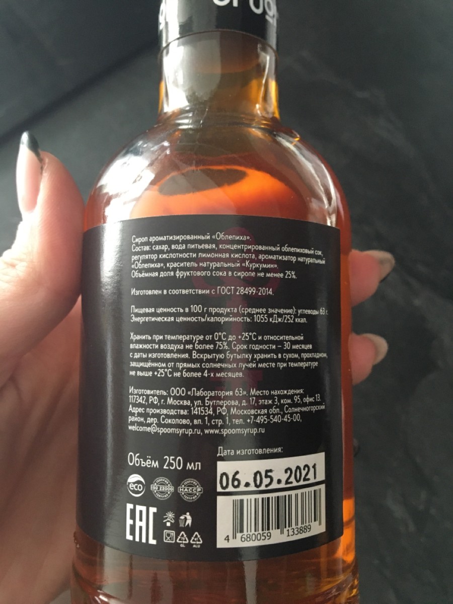 Сироп Spoom "Облепиха", 1 л (для кофе и коктейлей)