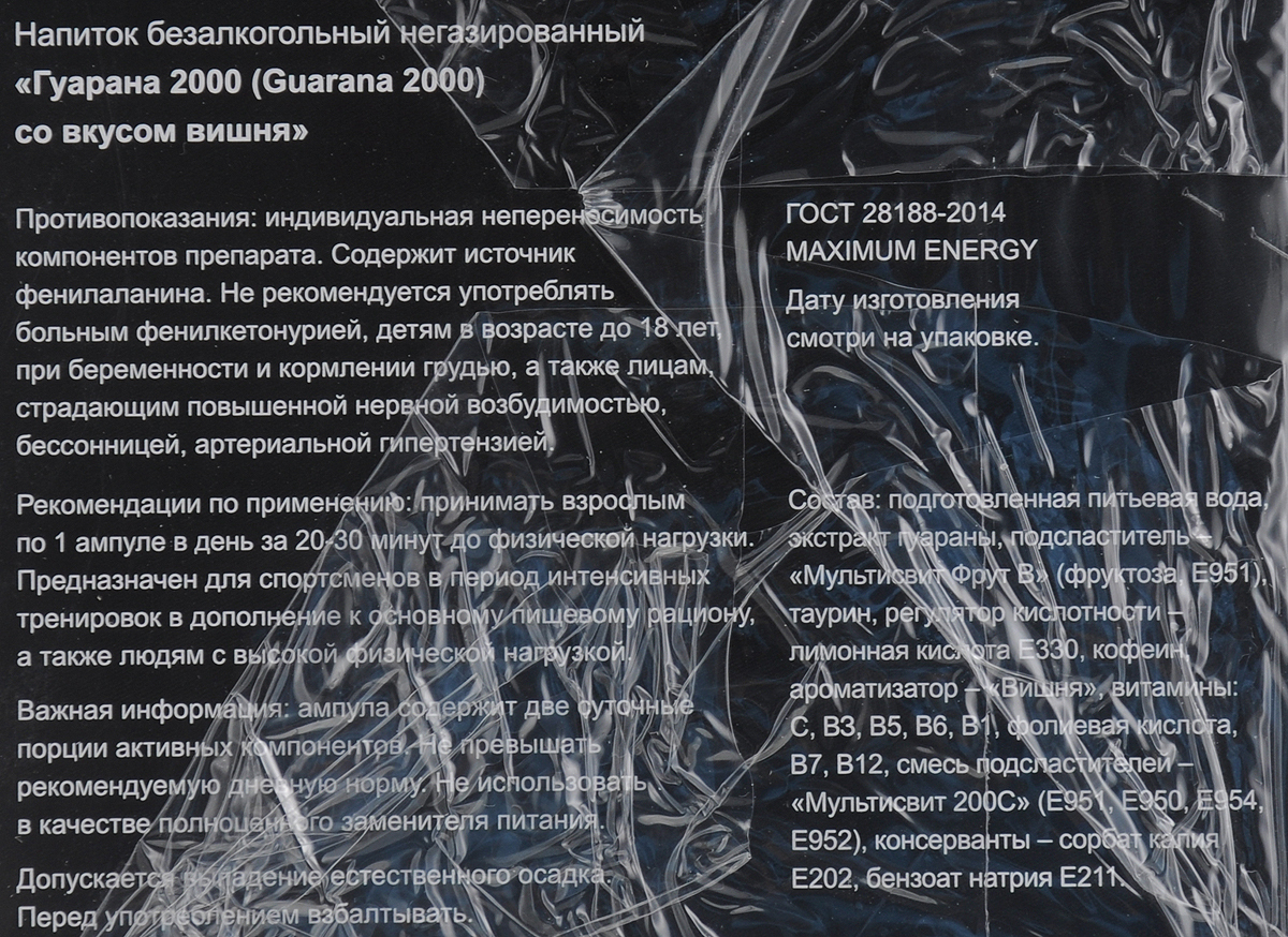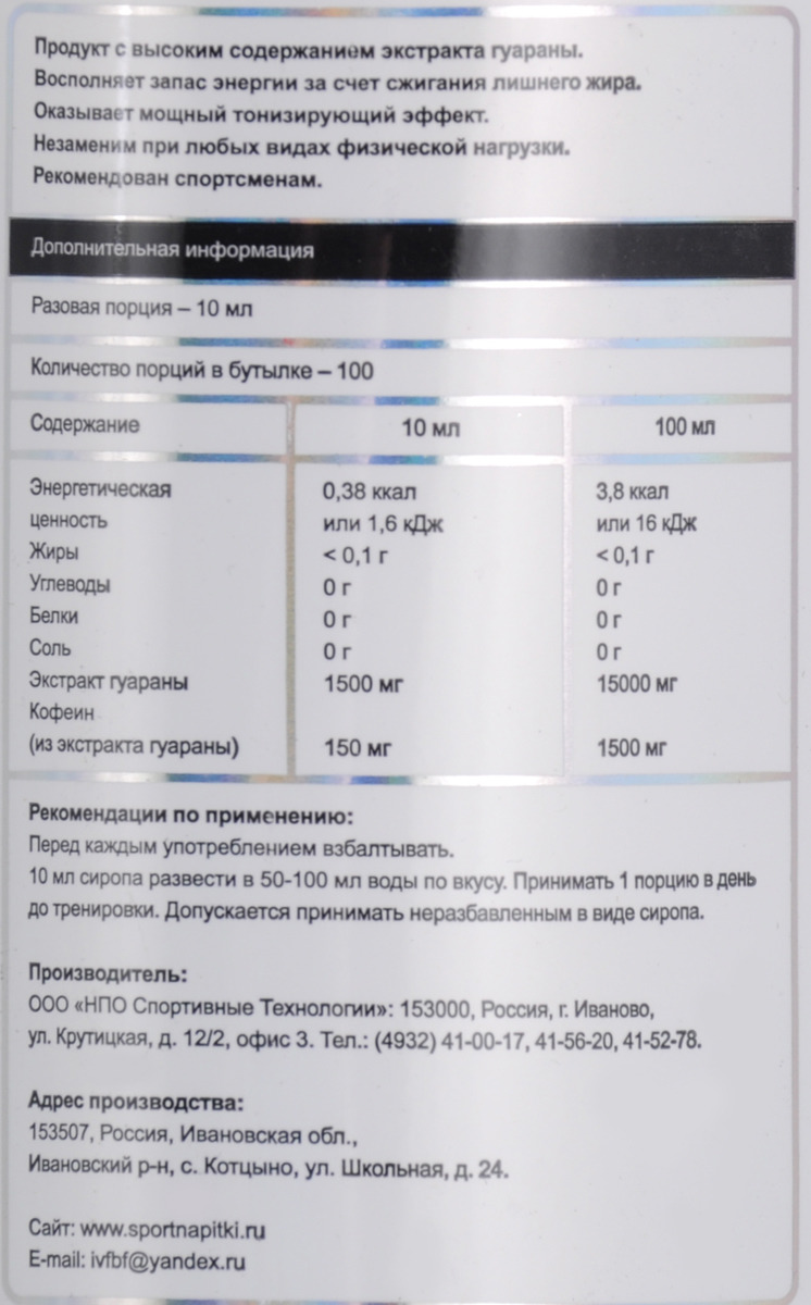 Напиток энергетический Sport Technology Nutrition "Гуарана", вишня, 20 шт х 25 мл