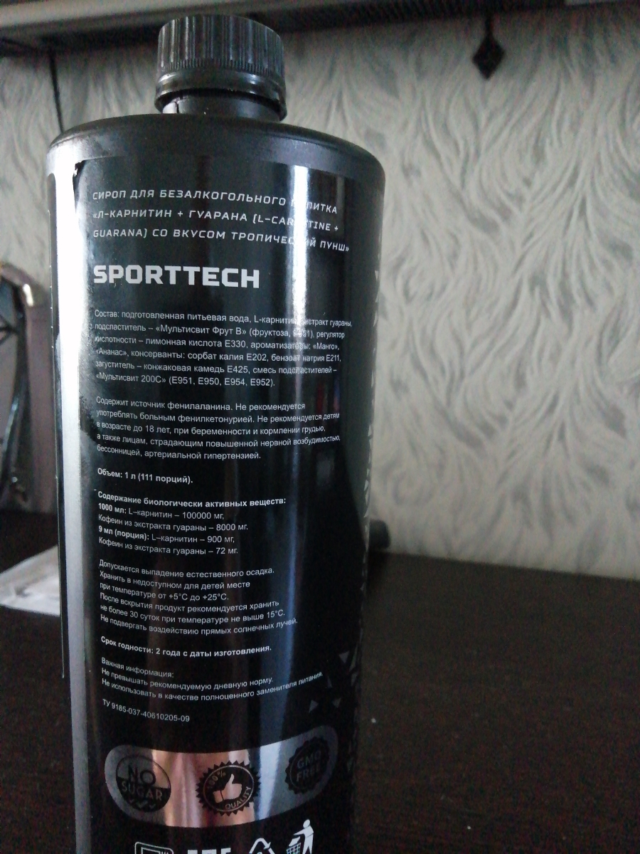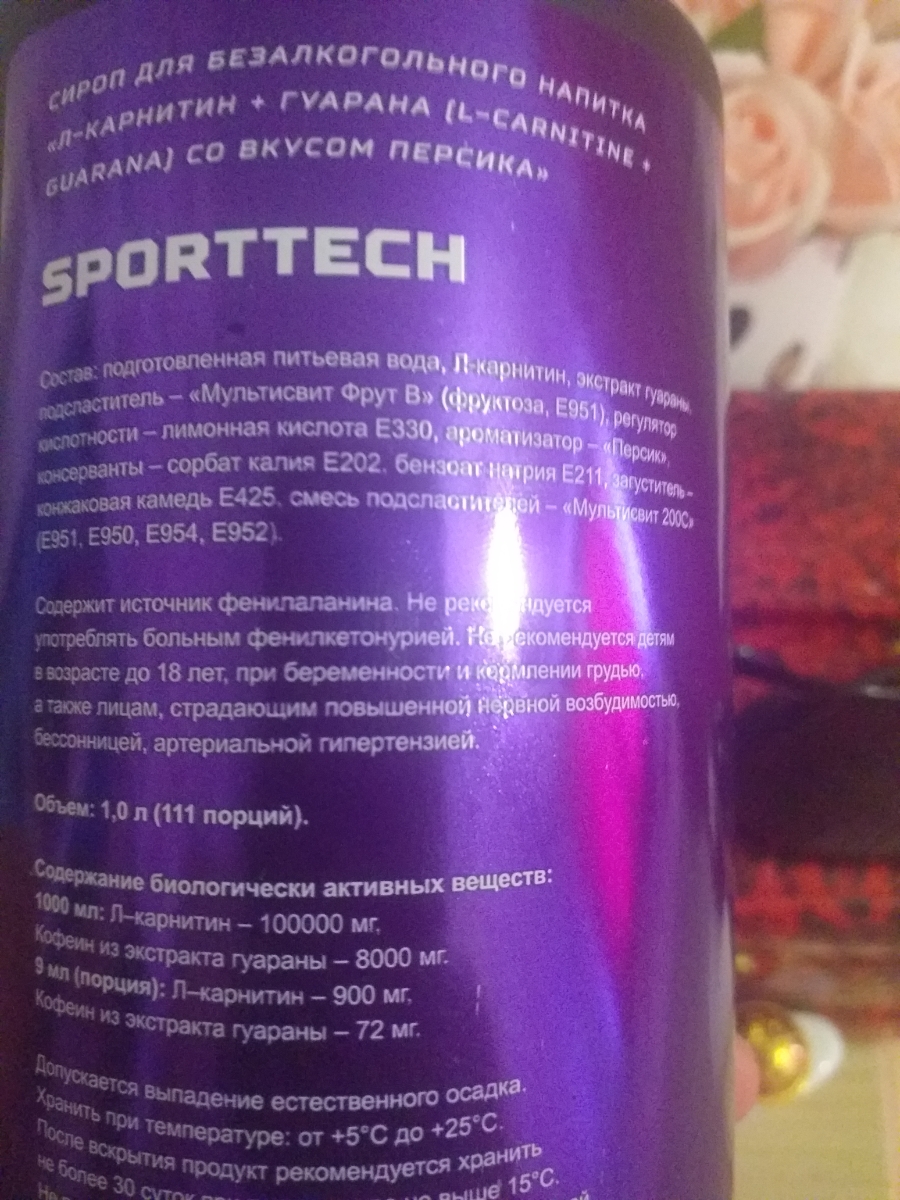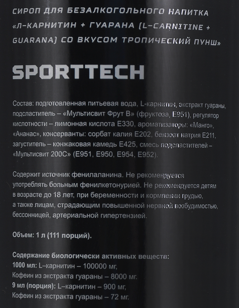 Л карнитин Жидкий SportTech L-carnitine + Guarana (1000 мл.) - Персик