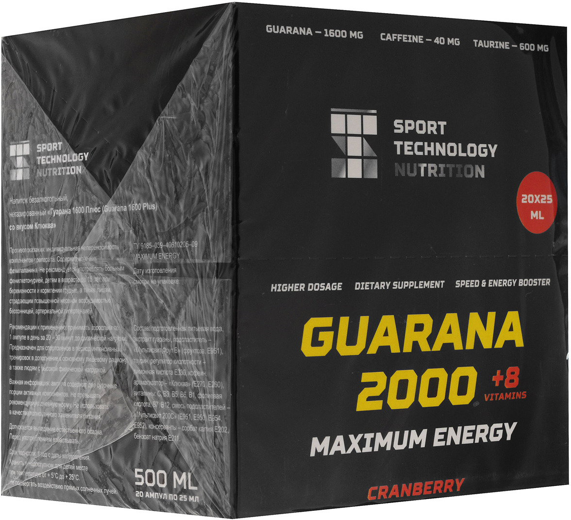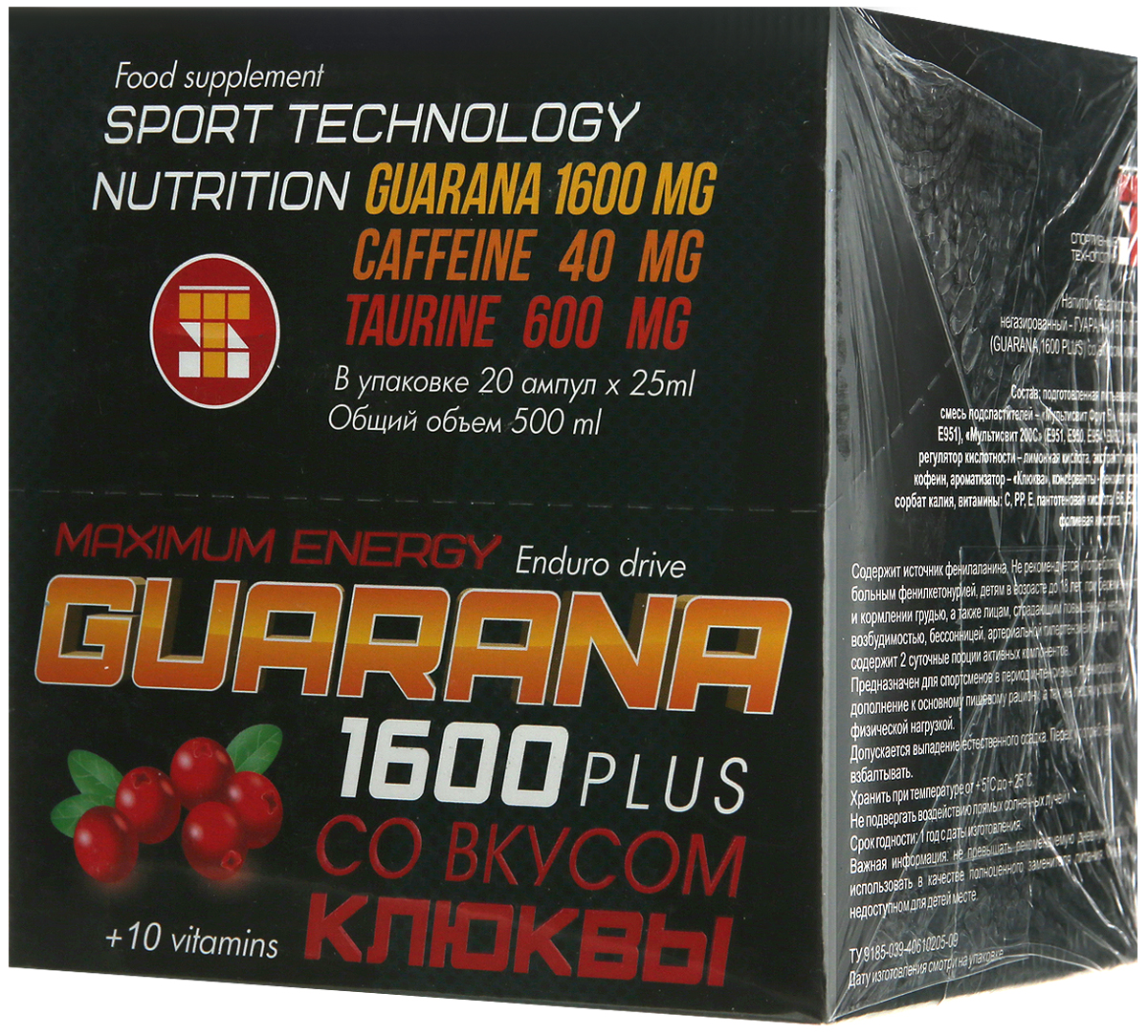 Напиток энергетический Sport Technology Nutrition "Гуарана", клюква, 20 шт х 25 мл