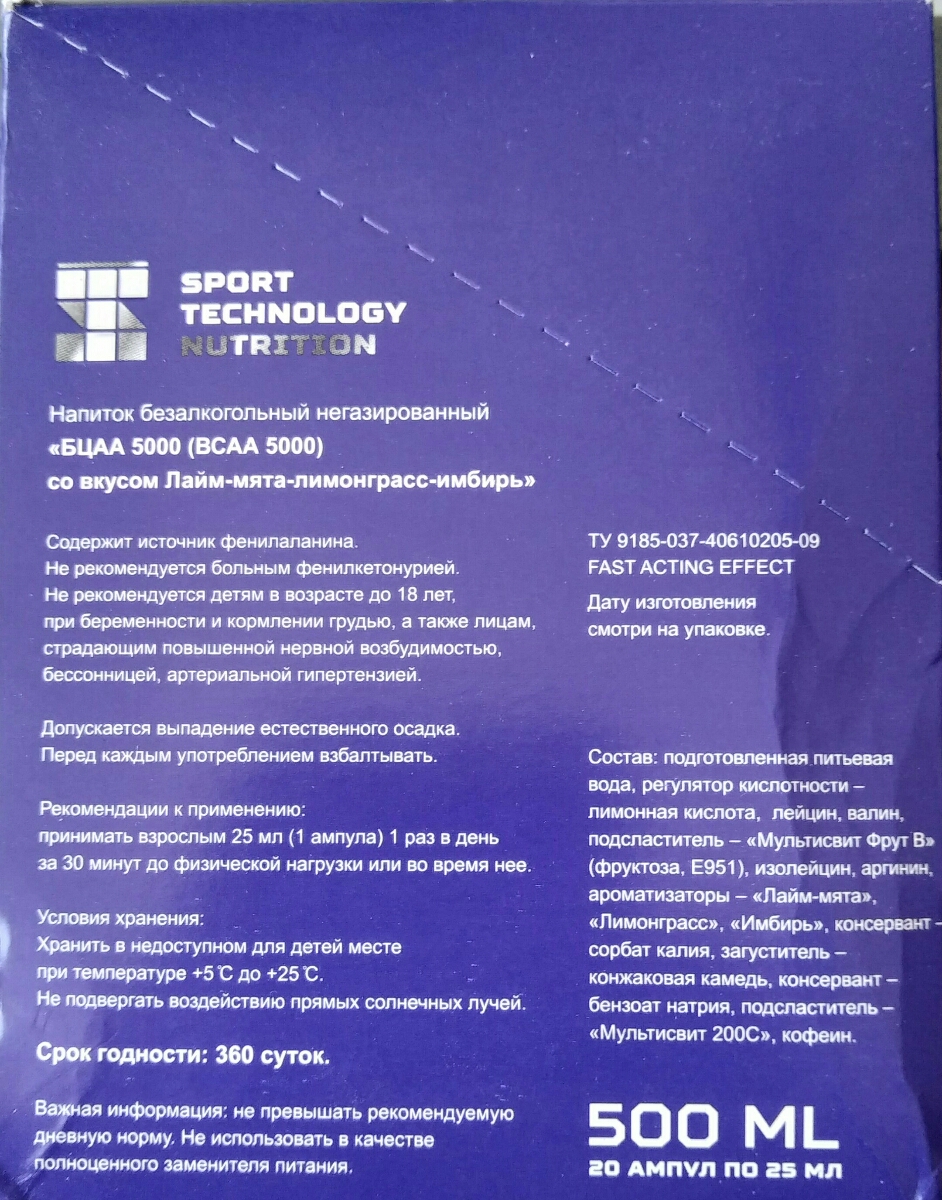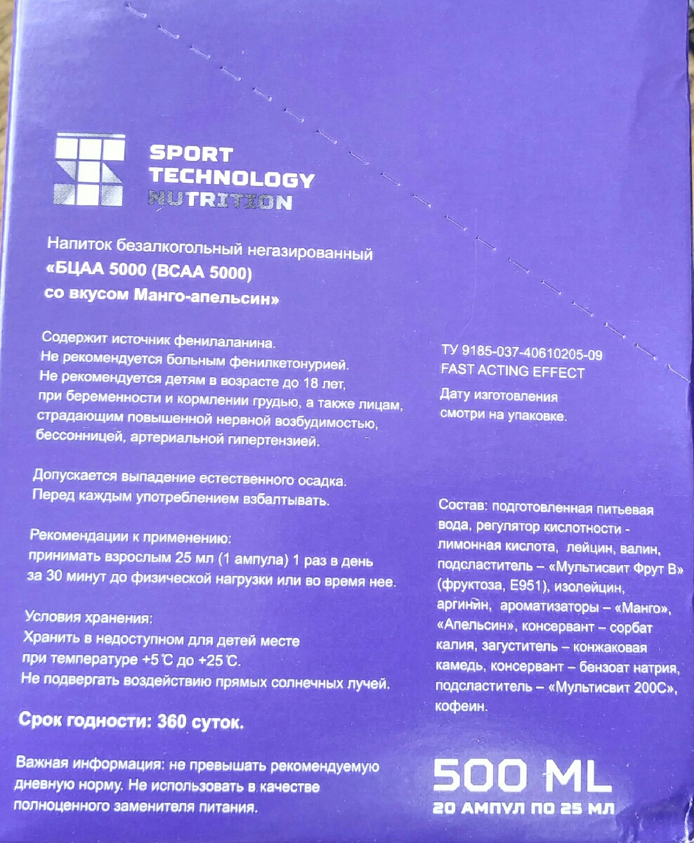 BCAA Sport Technology Nutrition "5000", манго-апельсин, 25 мл х 20 шт