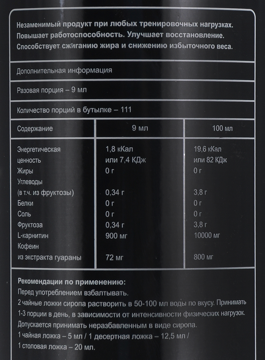 L-карнитин Sport Technology Nutrition L-carnitine + Guarana, 0,5 л